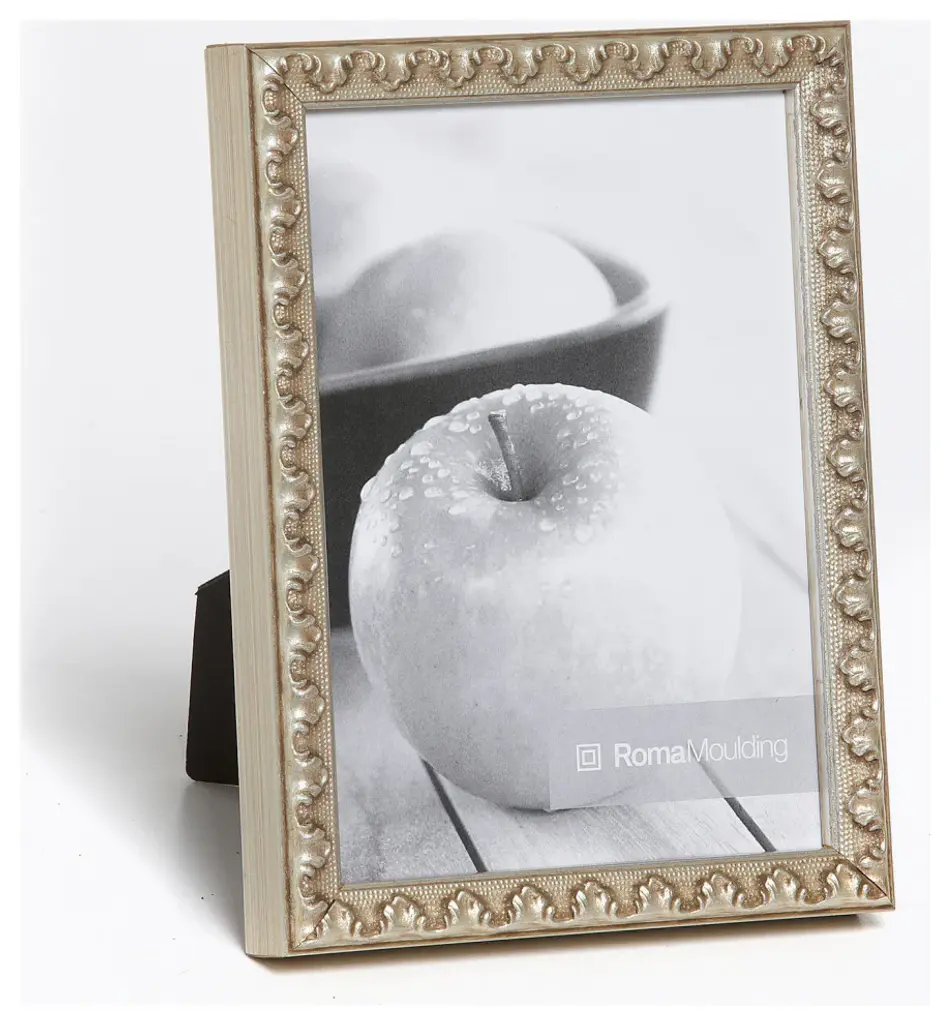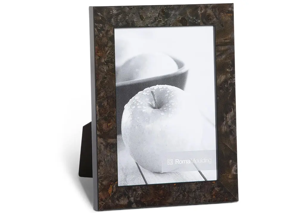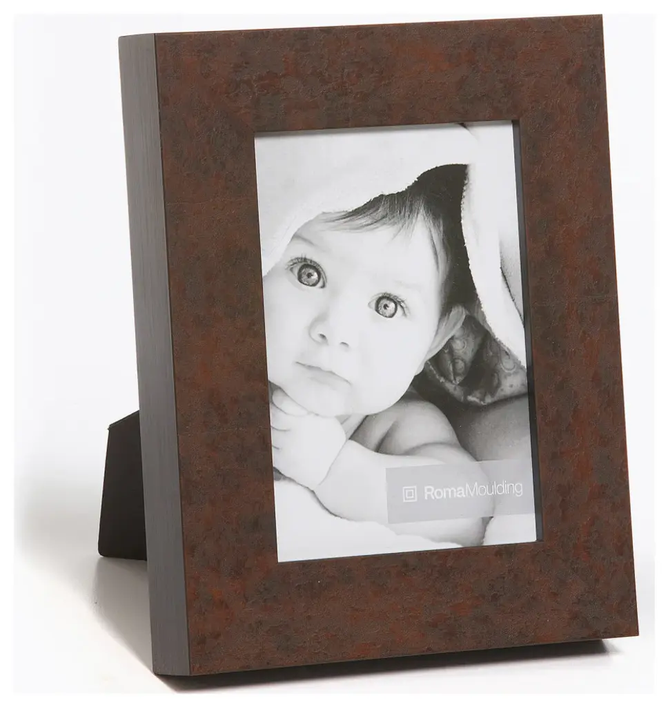 Fits 5" x 5" pictures. The frame is 3/4" wide. They are made from 100% natural wood, with crystal clear shatter-resistant glass, and an easel backing. These frames can be displayed as landscape or portrait. Deep rustic elegance defines the mood delivered in the Savoir mouldings collection that marries old world charm With modern day elegance. Inspired by the medieval town of Cognac in France, Savoir is the very definition of refinement, class and design.