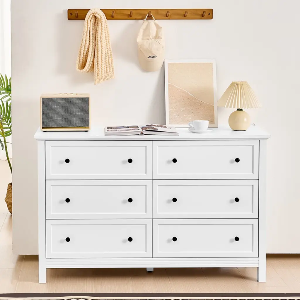Vevor 6 Drawer Dresser, Wooden Chest Of Drawers With Sliding And Anti-tip Device, Retro Minimalist Dresser Chest, Closet Storage Tv Stand, White