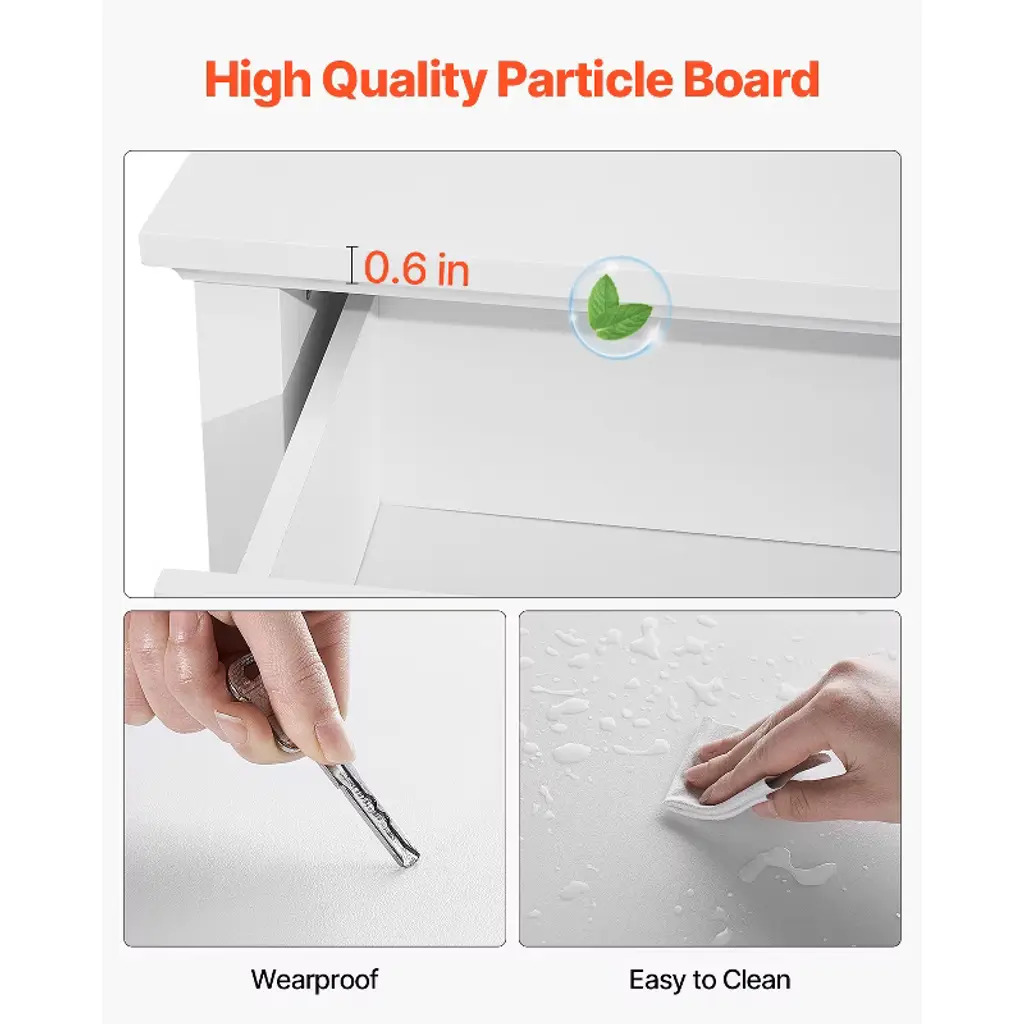 Feature: Elegant and Vintage: Enhance your living room with this vintage drawer dresser. The metal handles and simple lines bring an elegant touch to your home, making it not just a storage solution but also a piece of décor that adds a unique charm to your space. Multi-functional Storage Space: The six wooden drawer dresser provides private storage for clothes, towels, hats, and more. The spacious top is ideal for keys, photo frames, mirrors, and personalized décor, making it convenient to access. Each drawer is equipped with metal rails, allowing smooth and easy sliding to quickly retrieve or store items. Stable Structure: Our dresser excels in weight capacity and stability. Crafted from thick, high-quality particle board, the durable tabletop withstands daily wear and tear, supporting up to 150 lbs / 68 kg. Each drawer can hold up to 40 lbs / 18 kg, providing excellent load-bearing capacity. Suitable for Any Room: This dresser chest can be used as a clothing storage cabinet, toy organizer, entryway cabinet, TV stand, vanity, and more. It’s the ideal solution for areas in your home that need to control clutter. Note: Due to lighting conditions and differences in viewing devices, actual product color may slightly vary from the photos. Easy Assembly: We provide detailed assembly instructions, and each part is labeled for easy identification during setup, making assembly simple. With the instructions, you’ll quickly have your new dresser ready to organize your space. Note: Please avoid using power tools when assembling. Package Content 1 x User Manual