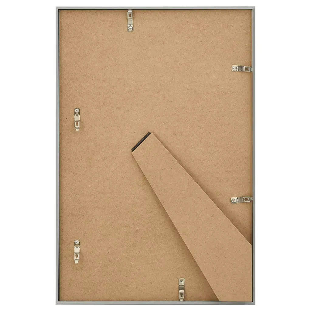This set of five silver photo frames is all about elevating your home decor while giving you cool ways to display your cherished memories or artwork. Made from tough materials like MDF and PVC, these frames boast a smooth, modern design that blends effortlessly with different interior styles, making them perfect for your living room, bedroom, or office. They beautifully showcase important moments, turning your favorite snaps into stylish displays. Versatile Orientation: The frames can be easily set up horizontally or vertically, allowing for creative arrangements in any space.Durable Construction: Made from high-quality MDF and PVC, these frames are built to last while keeping their elegant look.Contemporary Aesthetic: The matte silver finish gives these frames a sleek, modern vibe that fits well with any style.Convenient Picture Changes: Each frame has a lock on the back, making it easy to switch out photos whenever you fancy.Perfect Size: At 8.3 x 11.7 in, these frames work great for standard-sized images, giving a stylish look that grabs attention.