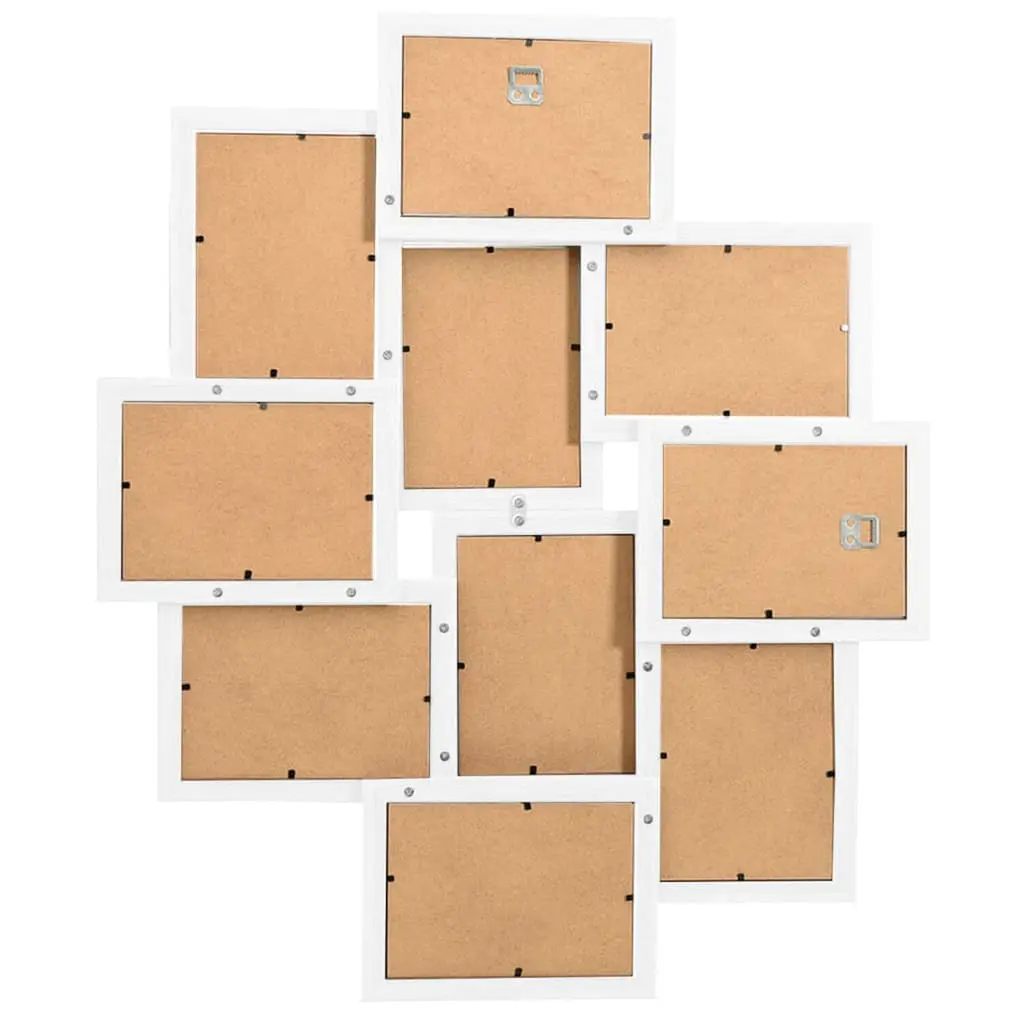This collage photo frame beautifully displays ten 4x6 in photos, adding a personal touch to your space. Its modern rectangular shape and sleek white finish make it elegant, fitting perfectly in living rooms, bedrooms, or offices while blending with various decor styles. Modern Aesthetic: The tidy design boasts a painted MDF finish that looks sharp, matching contemporary and traditional decor. Sturdy Construction: Made from tough MDF and hard PS, this frame keeps your photos secure and looking great. Convenient Photo Changes: The user-friendly mechanism lets you swap pictures hassle-free. Ample Display Space: Holds ten photos, giving you a great way to show off your favorite memories or art in a neat way. Indoor Versatility: Perfect for different indoor spaces, this frame enhances any room, whether in the living room, bedroom, or office.