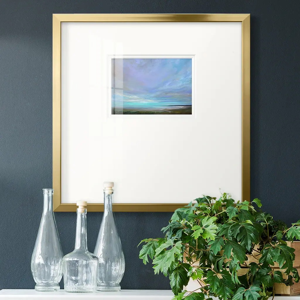 SILVER LEAF FRAME WITH FILLET AND LINEN MAT. FRAMED IN GLASS.