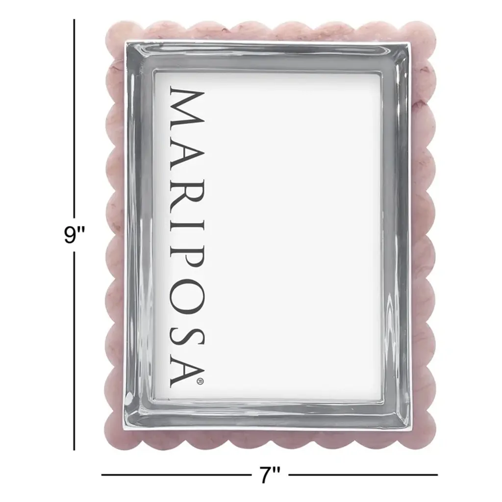Providing an element of luxury, this chic yet whimsy picture frame is the way to showcase some of your most thoughtful memories. Our pink acrylic scallop frame has fashion-forward acrylic that wraps around the sophisticated signature border. Beautifully boxed in a Mariposa gift box - we make gifting easy!