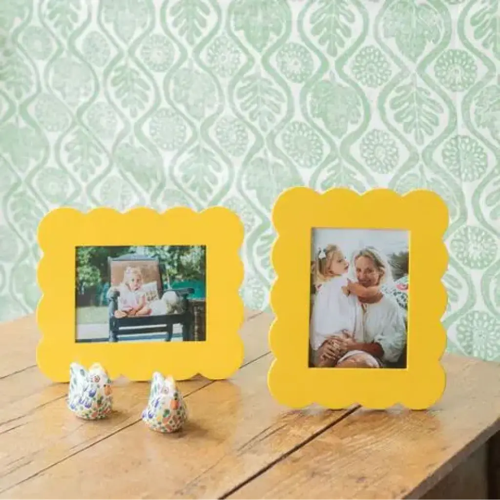 This lovely Yellow Scalloped Photo frame is finished with 20 coats of high gloss lacquer, hand polished between each coat. This frame will match perfectly with one of our lacquered tray or boxes.