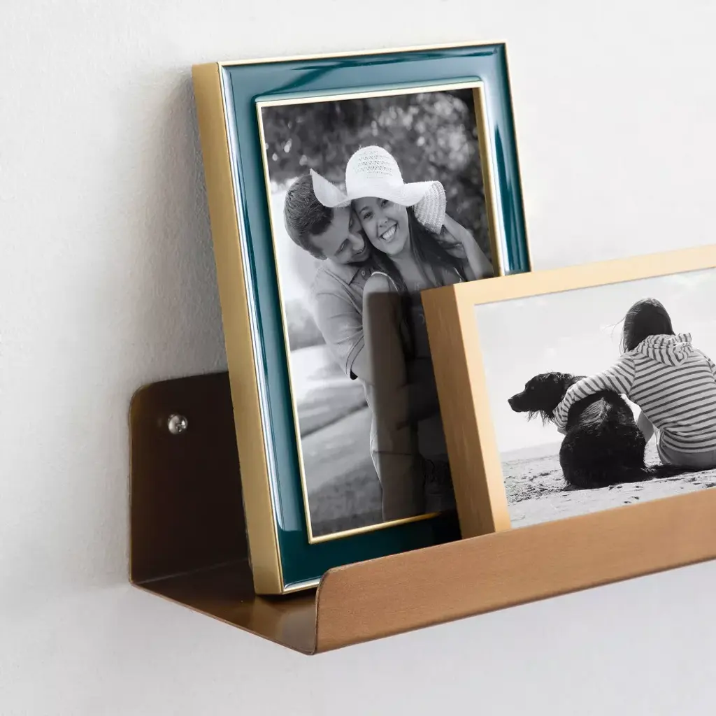 The Mezzo Modern Shelf is a simple way to display your favorite pictures and keepsakes without a complicated mounting method. This floating wall shelf set includes two 24-inch shelves to mount flush against your wall to create a beautiful display space. This set of two is a simple, minimalist solution for your display and storage needs. Each shelf has a heavy-duty metal composition, with the capacity to hold up to ten pounds. They're not just for picture frames, either; with a depth of 4.25" and a protective lip barrier, you can display your plants, novelties, and keepsakes safely. They also have an extra-resilient paint finish for extra resilience against natural wear. Display this modern, clean shelf in your bedroom, living room, office, entryway, bathroom, or any other room that needs extra space with a sleek, sophisticated silhouette. Add an exciting display piece with an eye-catching architectural design. This shelf set comes fully assembled with hardware included, along with pre-drilled holes for easy wall mounting.