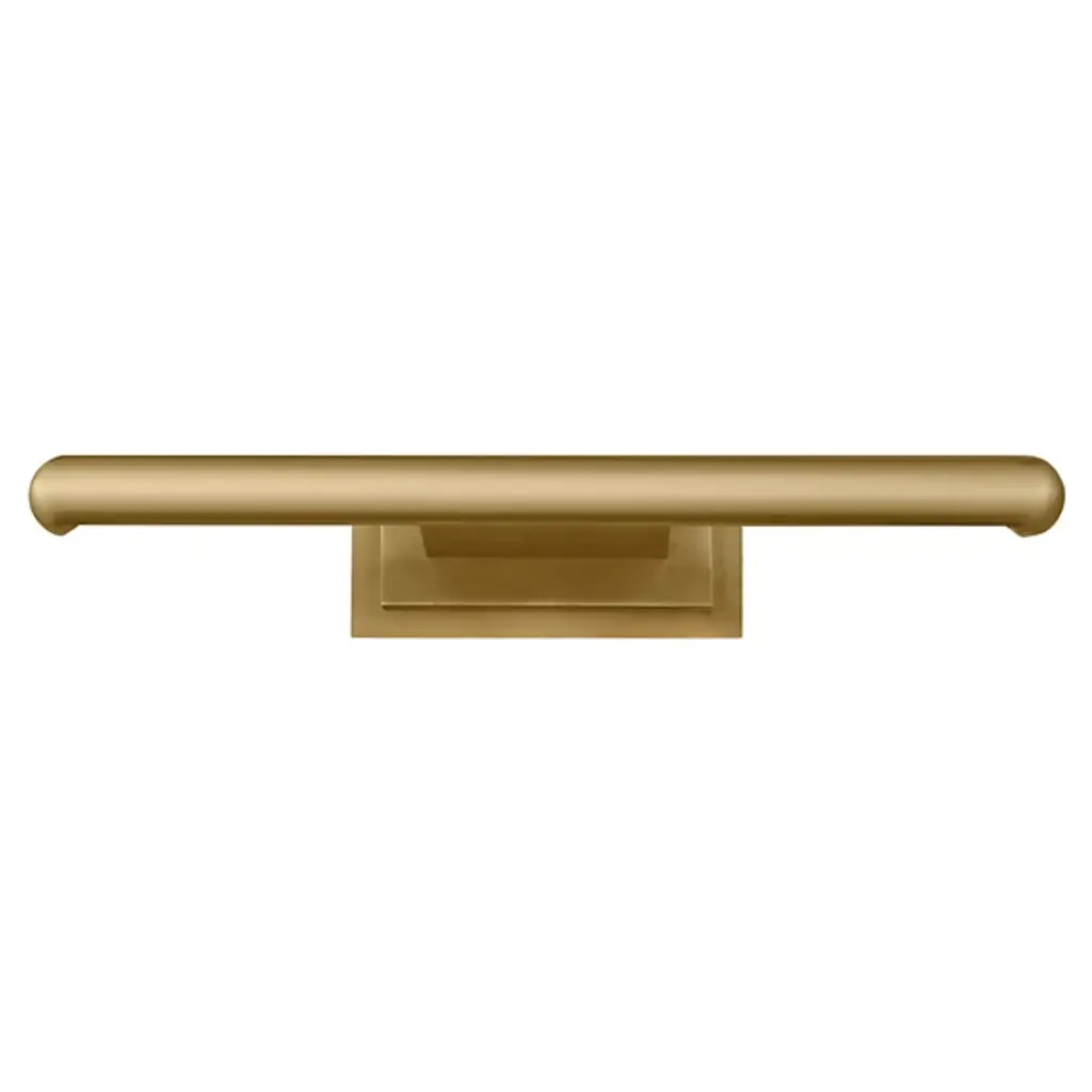 The Agra LED Picture Light from Visual Comfort Modern features a capsule-shaped brass shade with a built-in LED and recessed silicone diffuser for even, focused illumination. Designed by Sean Lavin, its clean silhouette is free of visible hardware, keeping the focus on your art or décor illuminated by the damp-rated lamping. The adjustable head pivots 90 degrees up or down, offering flexible lighting in a variety of interior settings, great for wall installation.