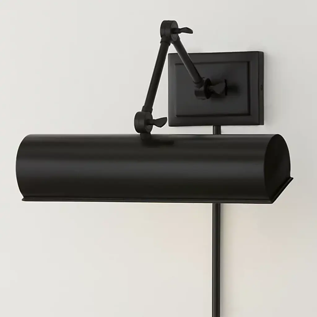 The Alastair Picture Light from Capital Lighting directs focused illumination precisely where needed. The pivoting arm mechanism allows for adjustable positioning, ensuring artwork receives optimal lighting regardless of placement. An integrated metal shade maximizes light reflection onto displayed pieces while minimizing glare for viewers. The horizontal socket orientation maintains a slim profile that doesn't compete with framed works. Optional plug-in capability with cord cover provides installation flexibility when hardwiring isn't preferred. An accessible on/off switch eliminates the need for separate controls, making this light equally practical for residential collections and professional gallery displays.