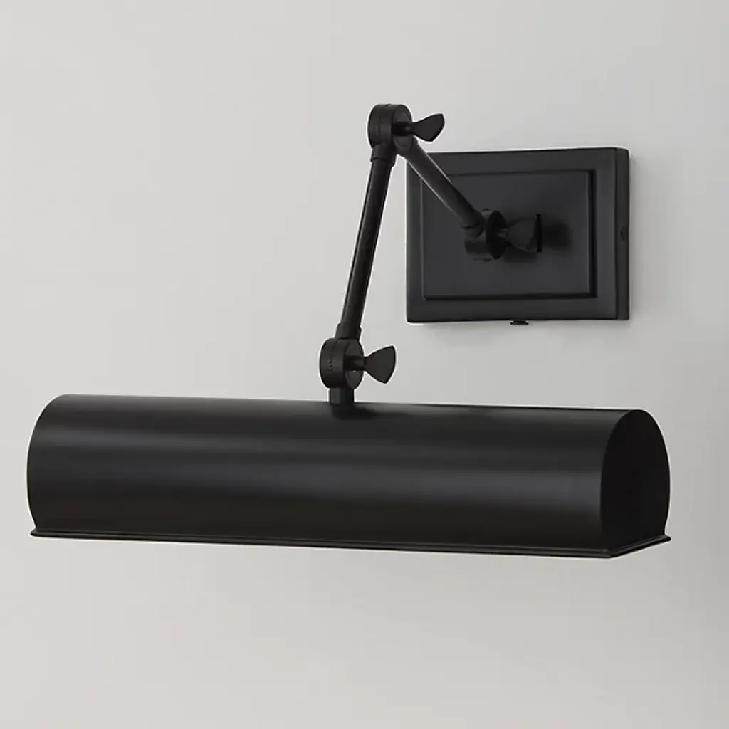 The Alastair Picture Light from Capital Lighting directs focused illumination precisely where needed. The pivoting arm mechanism allows for adjustable positioning, ensuring artwork receives optimal lighting regardless of placement. An integrated metal shade maximizes light reflection onto displayed pieces while minimizing glare for viewers. The horizontal socket orientation maintains a slim profile that doesn't compete with framed works. Optional plug-in capability with cord cover provides installation flexibility when hardwiring isn't preferred. An accessible on/off switch eliminates the need for separate controls, making this light equally practical for residential collections and professional gallery displays.