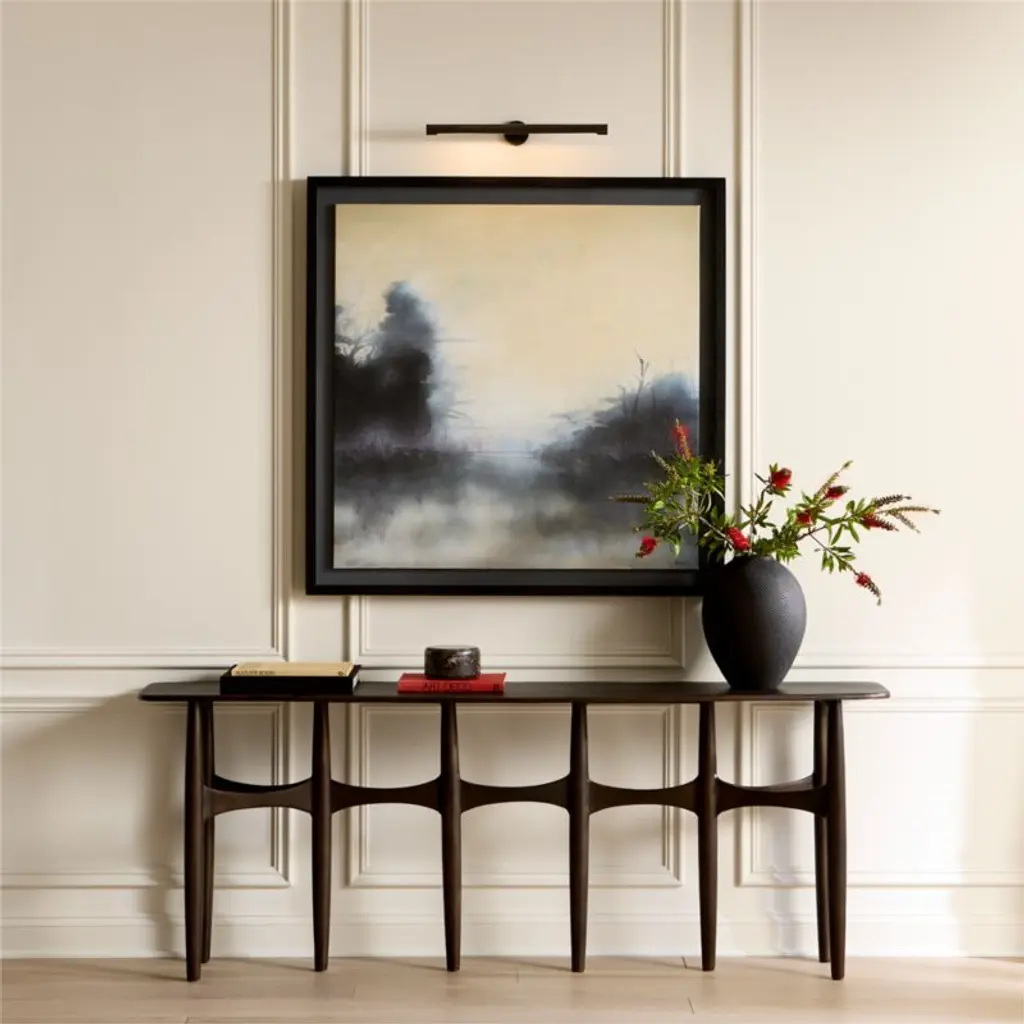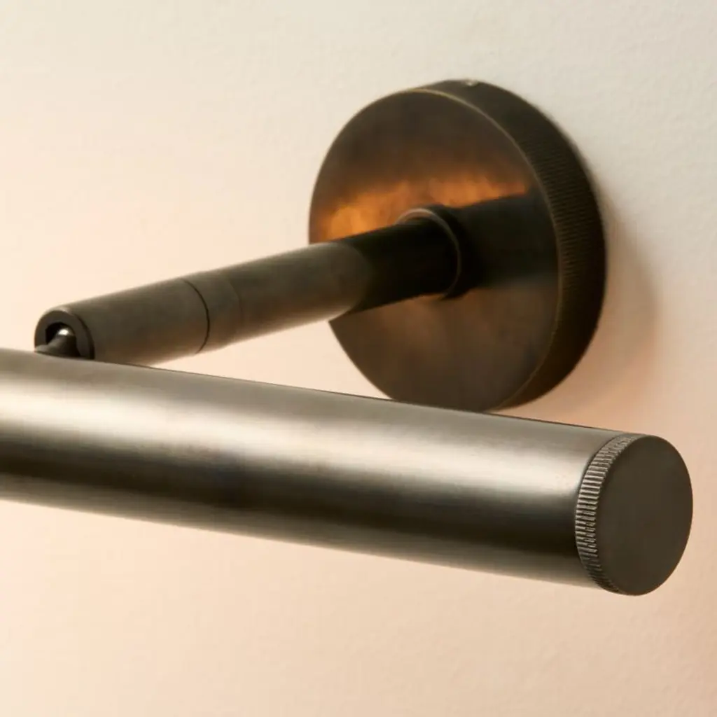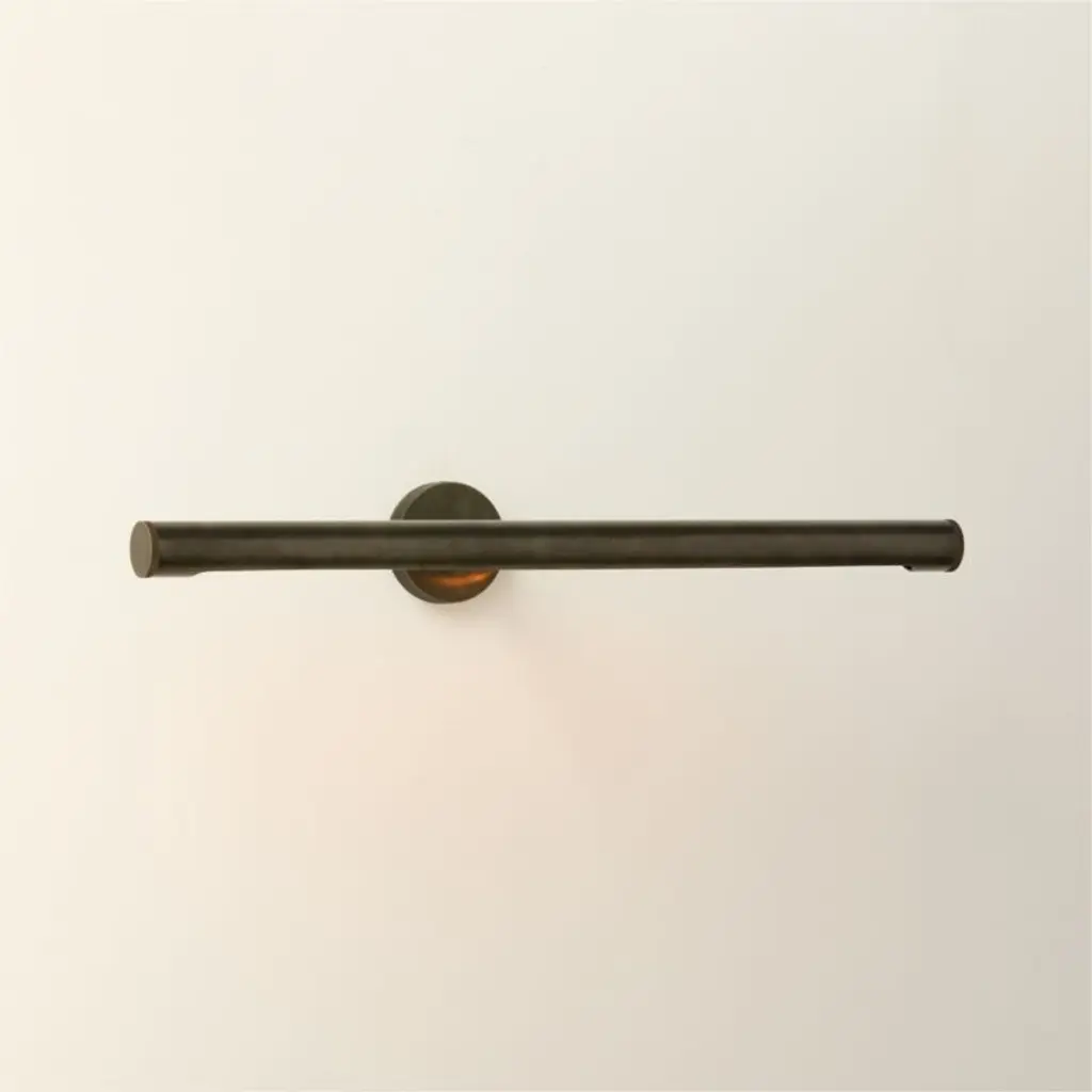 Blackened brass picture light by award-winning German designer Jannis Ellenberger of Ellenberger Studio illuminates artwork with clean lines and an adjustable arm. The brass is unlacquered, offering a living finish that will develop the patina of a vintage find. CB2 exclusive.