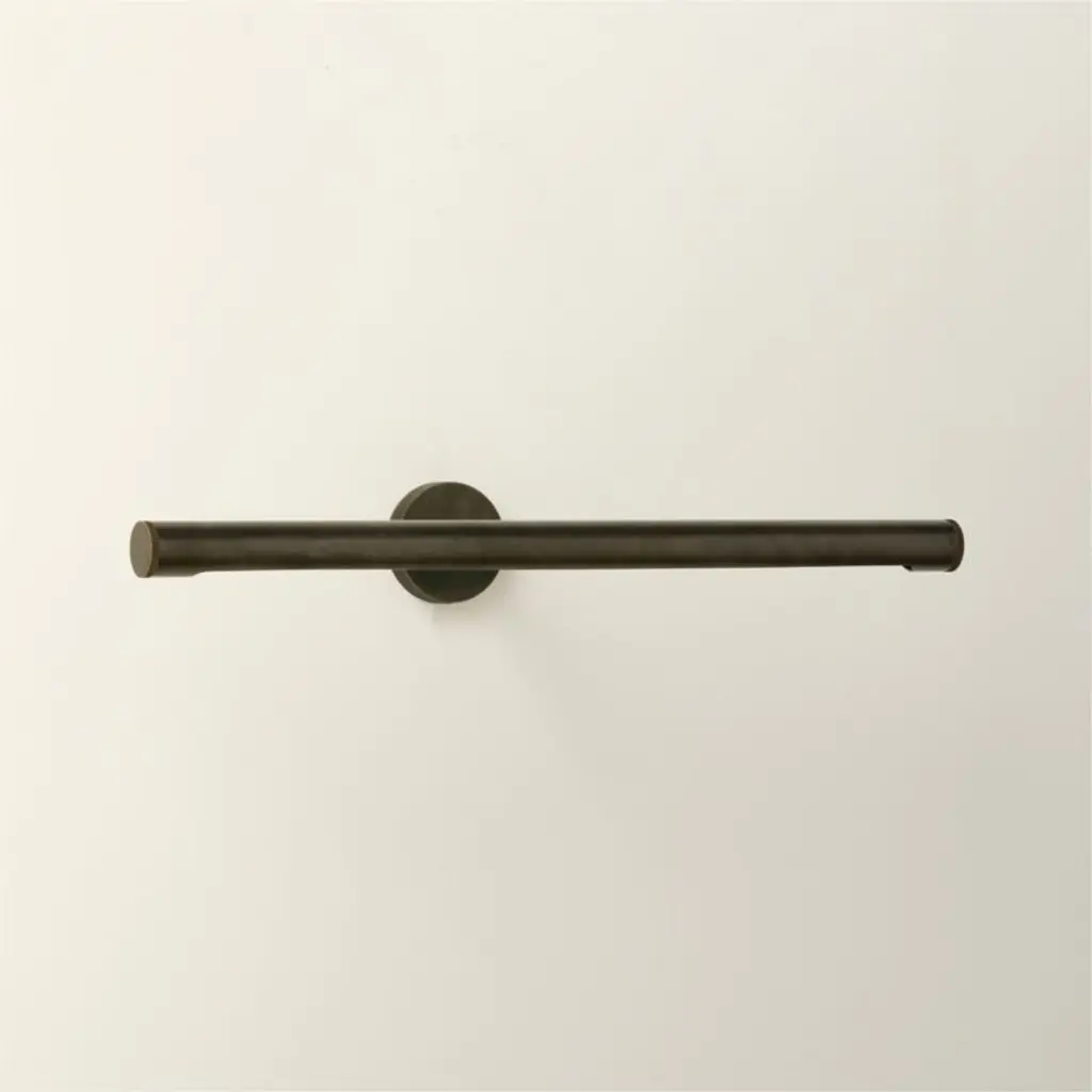 Blackened brass picture light by award-winning German designer Jannis Ellenberger of Ellenberger Studio illuminates artwork with clean lines and an adjustable arm. The brass is unlacquered, offering a living finish that will develop the patina of a vintage find. CB2 exclusive.