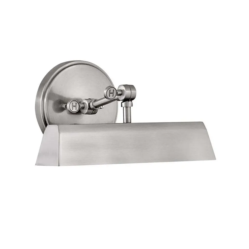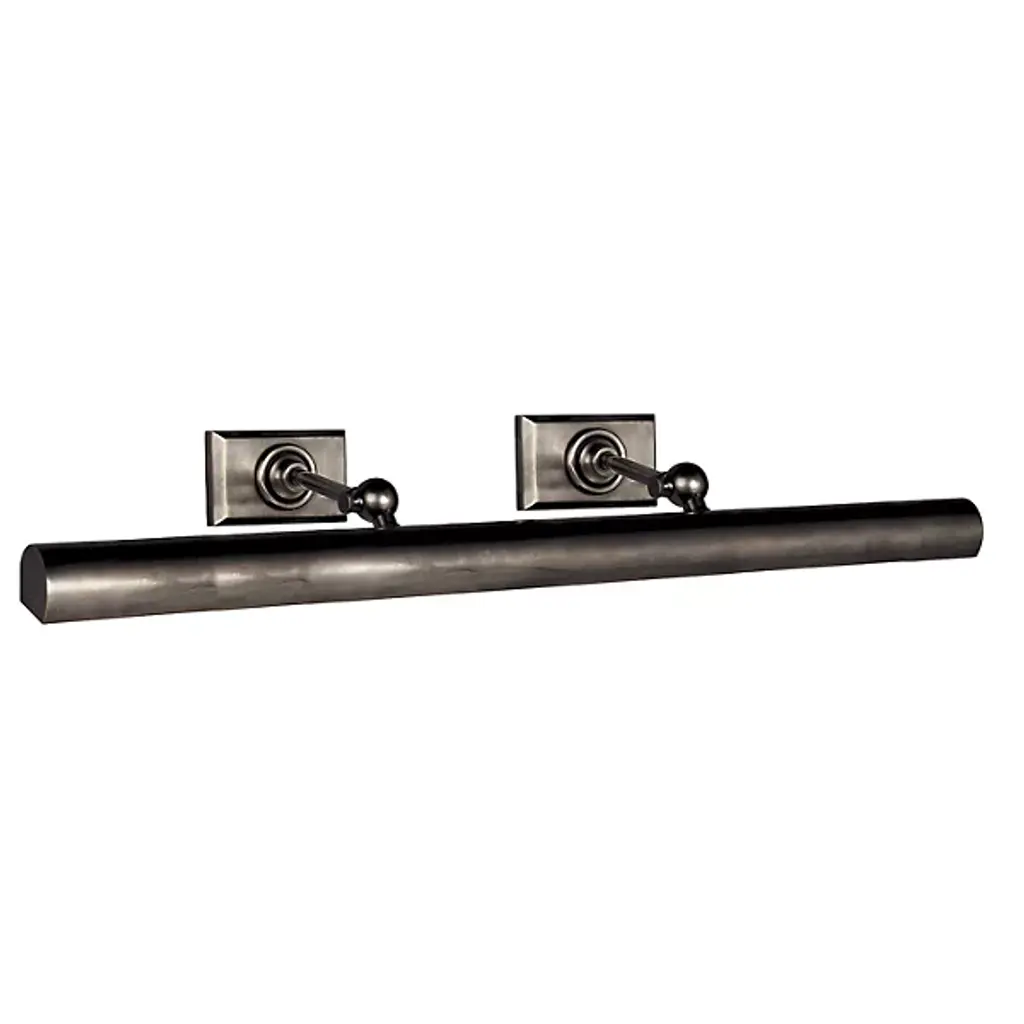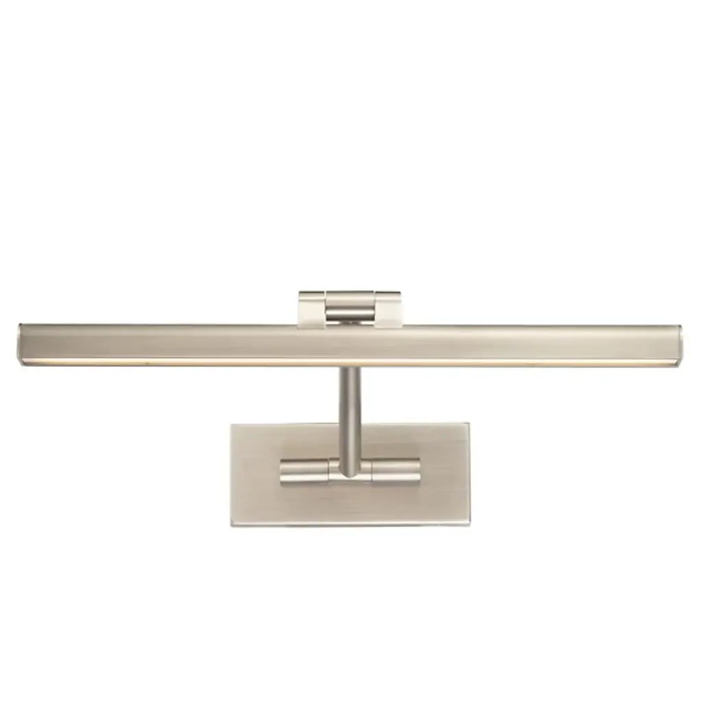 Bring a sleek modern piece to the walls of your modern home with the Ava Picture Light from House of Troy. The simple silhouette provides a touch of style as it mounts directly to the wall with a rectangular base. Made of smooth metal throughout, a wide arm leads from the base, leading to a pair of cylindrical extensions that each contain a bulb. The light flows from the piece in a warm and even manner, creating a welcoming layer of light.