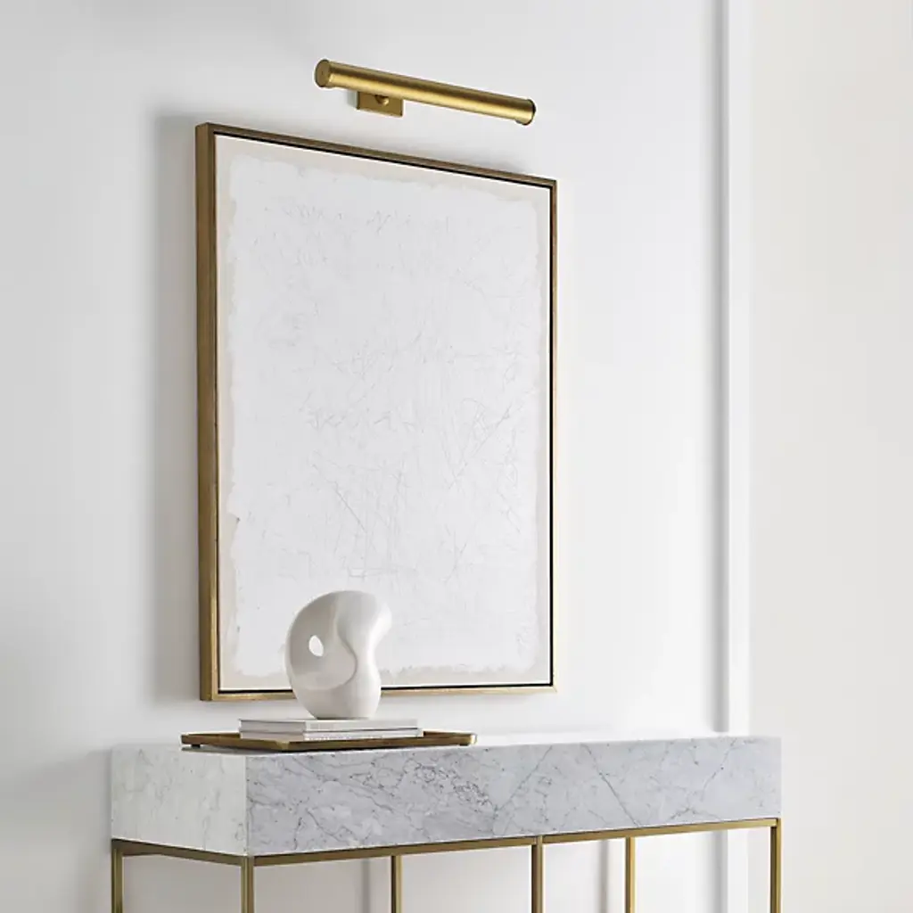 The Azer Picture Light from Visual Comfort Studio channels Ellen DeGeneres' talent for blending vintage inspiration with modern functionality. This wall-mounted fixture directs focused illumination precisely where you need it—highlighting artwork, architectural features, or decorative objects with intentional light rather than washing entire walls. Its steel construction gives it a substantial presence that feels appropriate above framed pieces or mirrors. Fully dimmable to protect light-sensitive items while still providing adequate visibility, this picture light changes how you experience your cherished possessions.