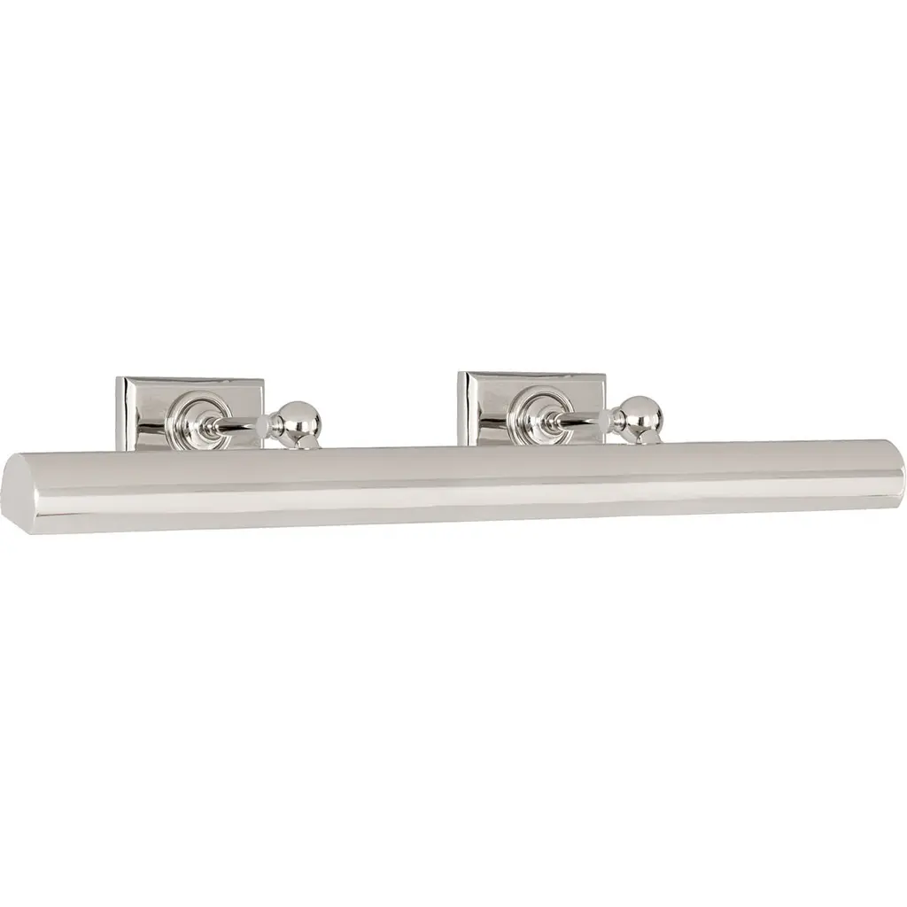 The Cabinet Maker's Picture Light from Visual Comfort Signature represents Chapman & Myers' approach to artwork illumination, prioritizing discretion over presence. The designers developed this wall fixture with simplistic styling that complements picture frames without competing for attention. Their philosophy emphasizes versatility across various interior themes, ranging from modern to transitional to vintage styles. The streamlined brass construction allows the illuminated artwork to remain the primary focus while providing necessary accent lighting for proper display and viewing conditions.