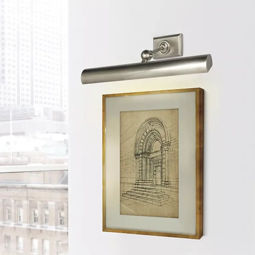The Cabinet Maker's Picture Light from Visual Comfort Signature represents Chapman & Myers' approach to artwork illumination, prioritizing discretion over presence. The designers developed this wall fixture with simplistic styling that complements picture frames without competing for attention. Their philosophy emphasizes versatility across various interior themes, ranging from modern to transitional to vintage styles. The streamlined brass construction allows the illuminated artwork to remain the primary focus while providing necessary accent lighting for proper display and viewing conditions.