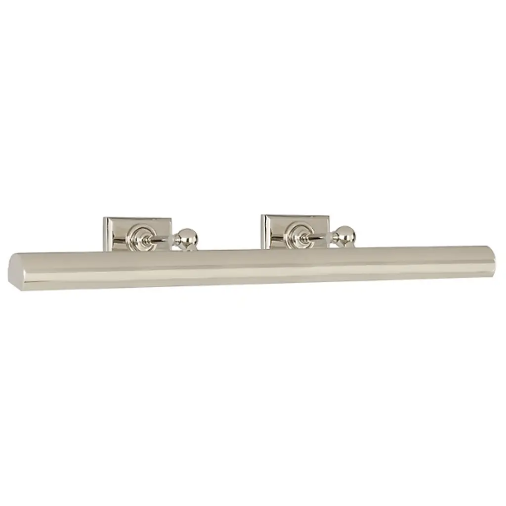 The Cabinet Maker's Picture Light from Visual Comfort Signature represents Chapman & Myers' approach to artwork illumination, prioritizing discretion over presence. The designers developed this wall fixture with simplistic styling that complements picture frames without competing for attention. Their philosophy emphasizes versatility across various interior themes, ranging from modern to transitional to vintage styles. The streamlined brass construction allows the illuminated artwork to remain the primary focus while providing necessary accent lighting for proper display and viewing conditions.