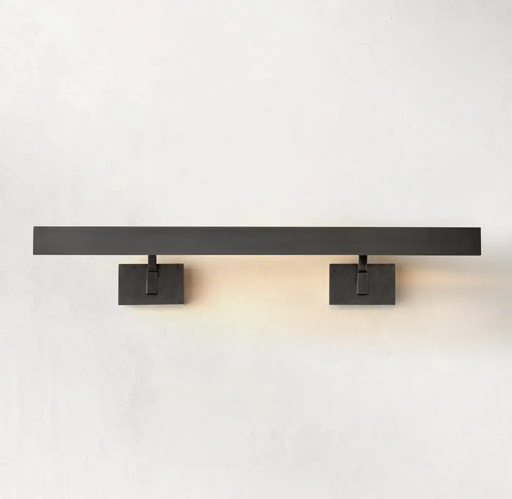 Pure of form, our Cabot gallery light offers streamlined functionality. Handcrafted of brass, the fixture's pentagonal shade features hinged adjustment points for customized illumination.