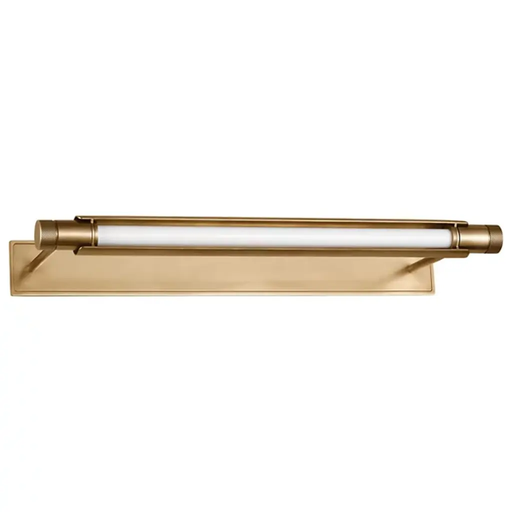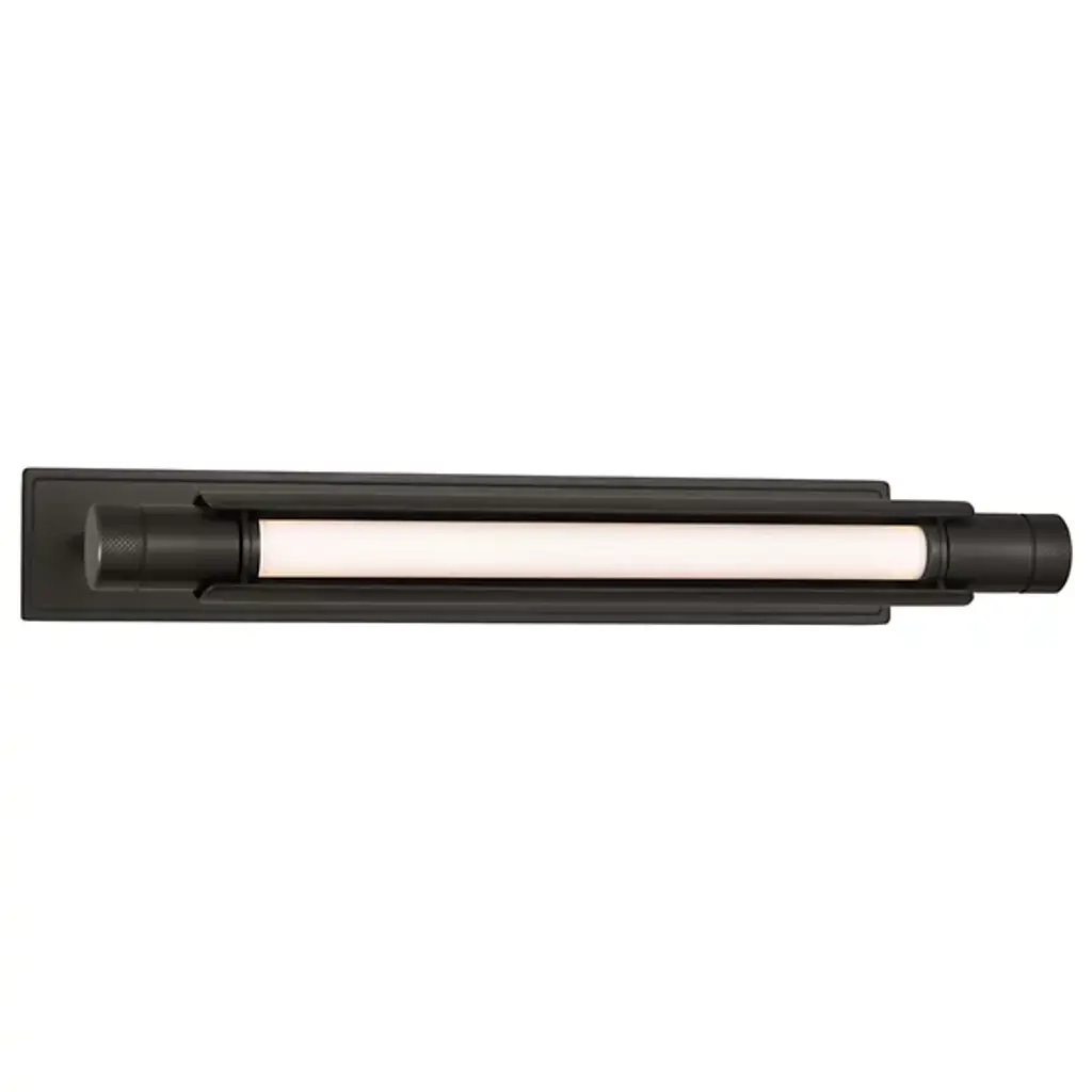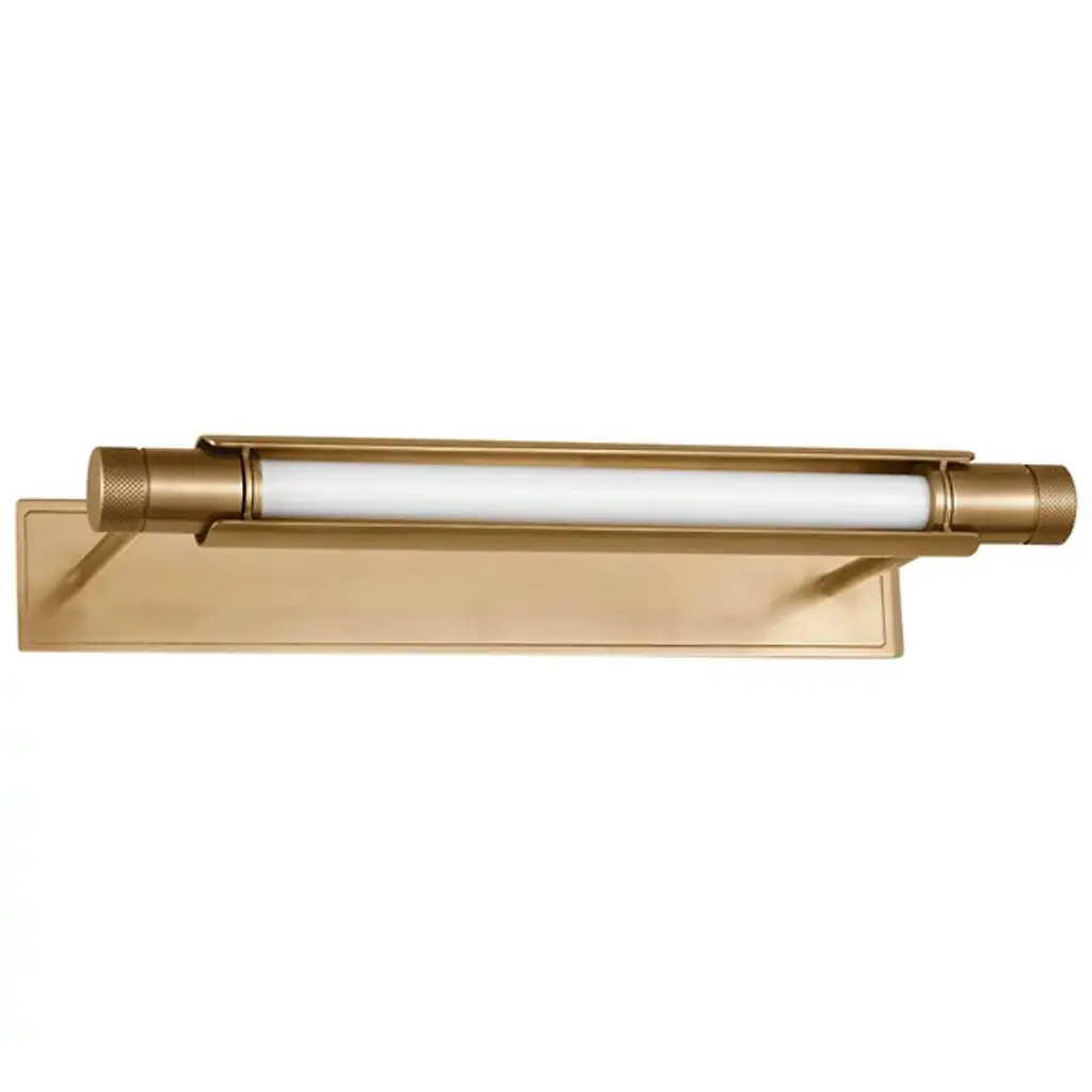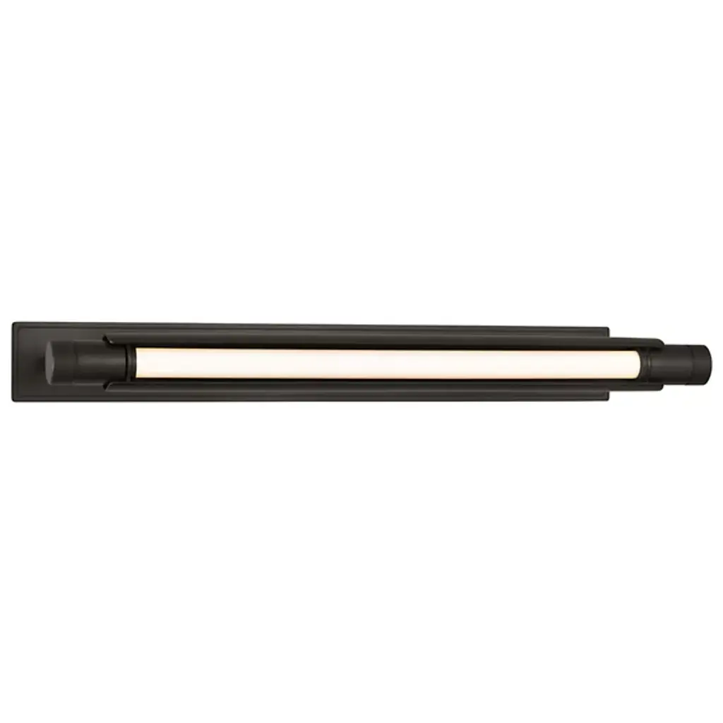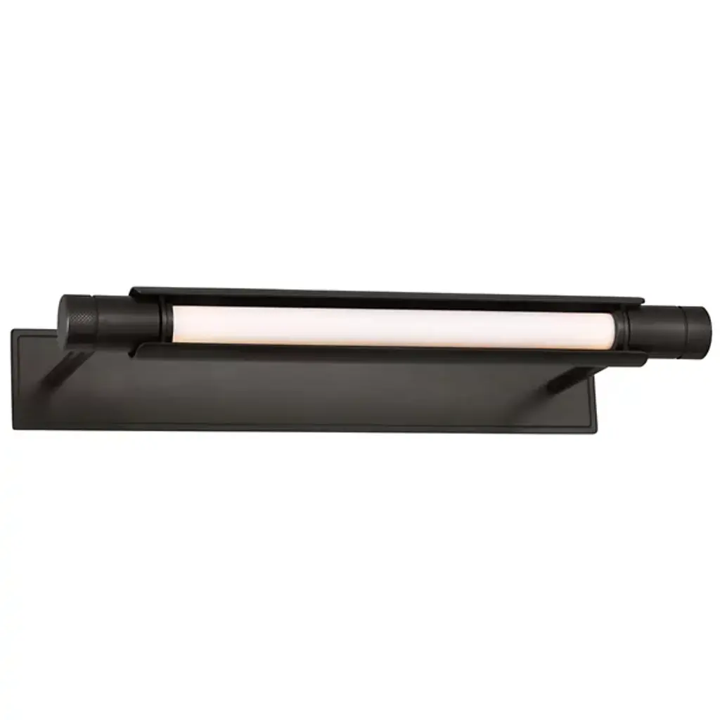 The Capa LED Picture Light from Visual Comfort Modern, designed by AvroKo, combines industrial mechanics with modern sophistication. A sleek cylindrical tube sits atop a precisely crafted rectangular light bar, creating a bold contrast that enhances both form and function. Its mechanical details add an edgy, industrial touch, while clean lines make it versatile for traditional and contemporary interiors alike. Designed for optimal illumination, the fixture pivots to highlight artwork or displays with precision and elegance.