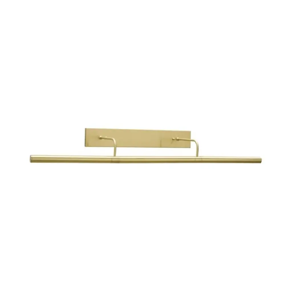 A thin light with excellent illuminating power. The House of Troy Direct Wire Double Arm Slim-Line Picture Light is more understated than its curved sibling, its support arms extending right out and down for a clean-lined look over artwork and portraiture. Rotate the shade in and out to better direct illumination.