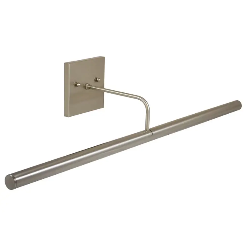 Show off a beautifully painted canvas or a heartfelt portrait with the elevating light coming from the Direct Wire Slim-Line LED Picture Light from House of Troy. Fitting of its name, the piece is as slim as can be. A sleek metal shade leans over the top of one's picture as a polished statement of line. The shade adjusts in direction, giving your artwork the ideal spread of LED light. A geometric backplate and an l-shaped arm complete the piece with a low-profile appearance.