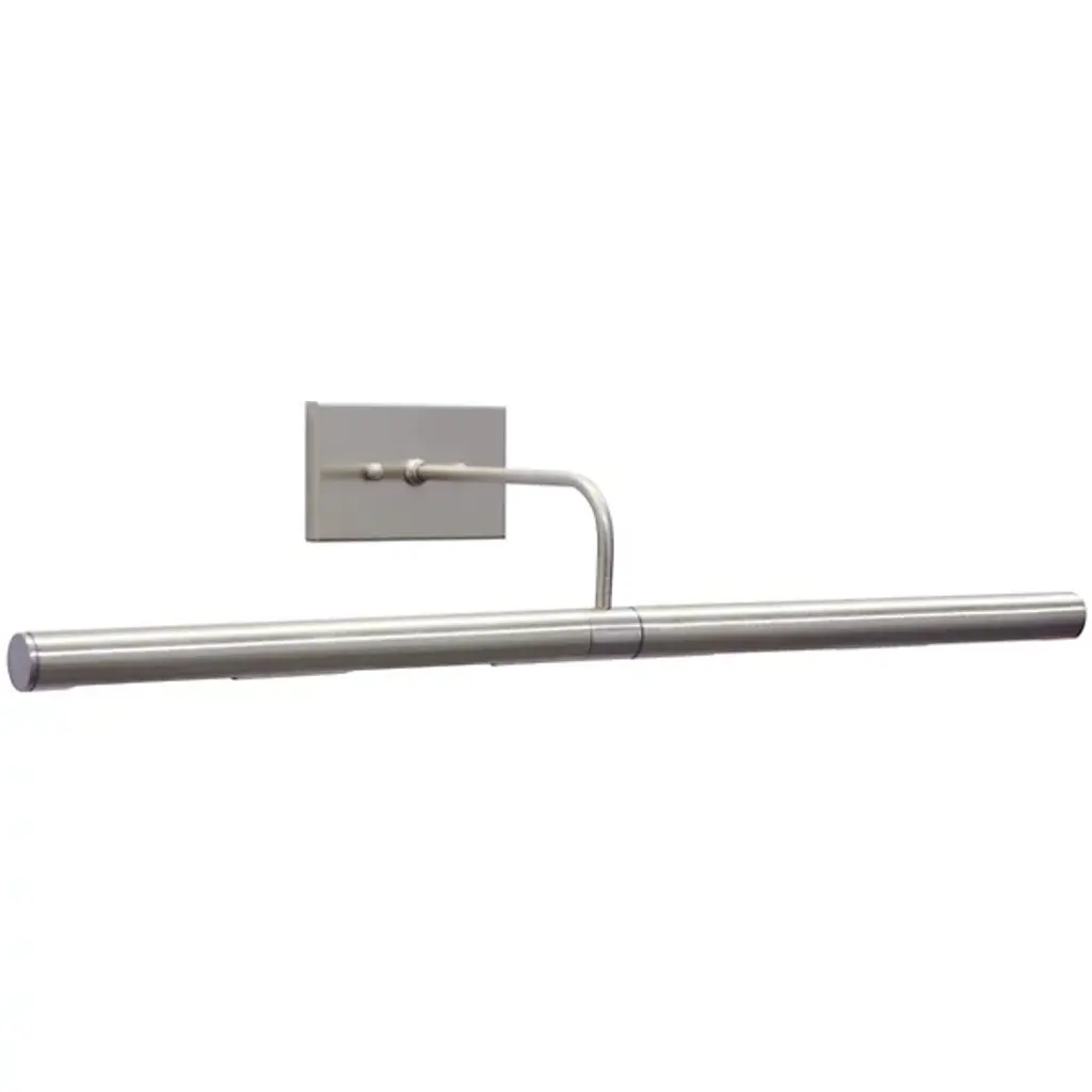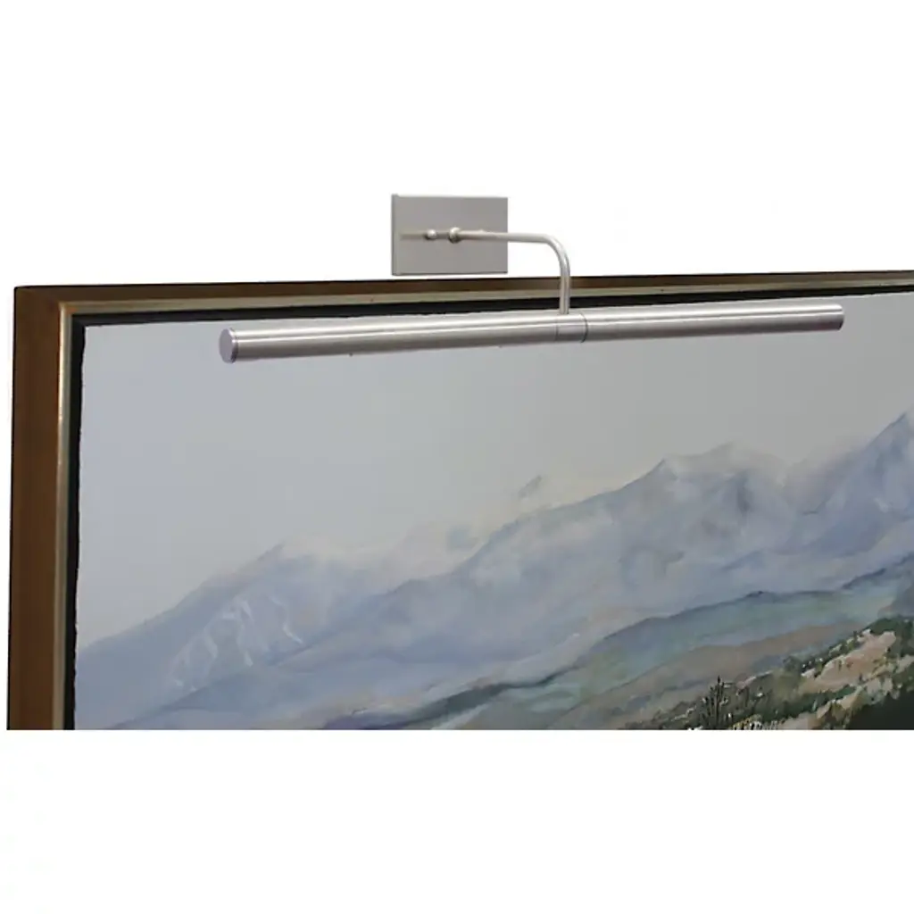 Lift the textured brush marks and the vibrant colors of your framed art with the emphasizing glow of the Direct Wire Slim-Line Picture Light from House of Troy. To not detract from your dazzling framed works, the piece's structure is presented in a sleek, streamlined silhouette. It mounts elegantly to the wall in a slim yet durable metal backplate. The forward-facing arm and the horizontal head are designed to seemingly disappear as you appreciate the artwork. The tubular head rotates in either direction, guiding light inside to the ideal beam of radiance.