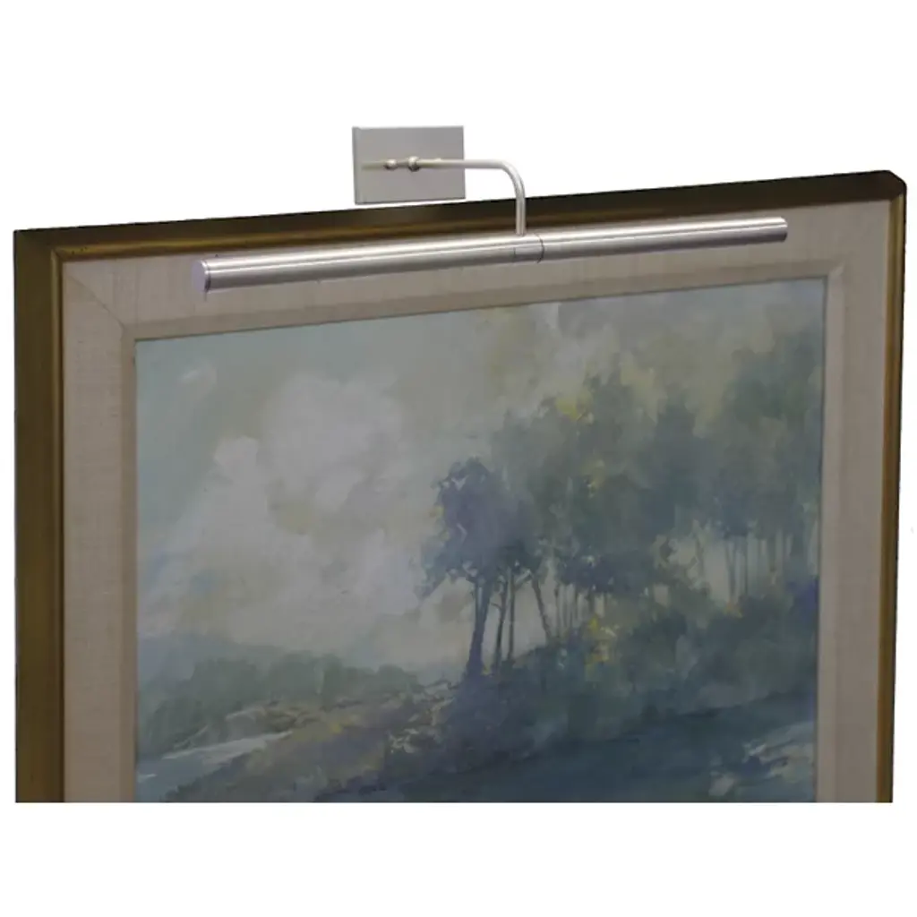 Lift the textured brush marks and the vibrant colors of your framed art with the emphasizing glow of the Direct Wire Slim-Line Picture Light from House of Troy. To not detract from your dazzling framed works, the piece's structure is presented in a sleek, streamlined silhouette. It mounts elegantly to the wall in a slim yet durable metal backplate. The forward-facing arm and the horizontal head are designed to seemingly disappear as you appreciate the artwork. The tubular head rotates in either direction, guiding light inside to the ideal beam of radiance.