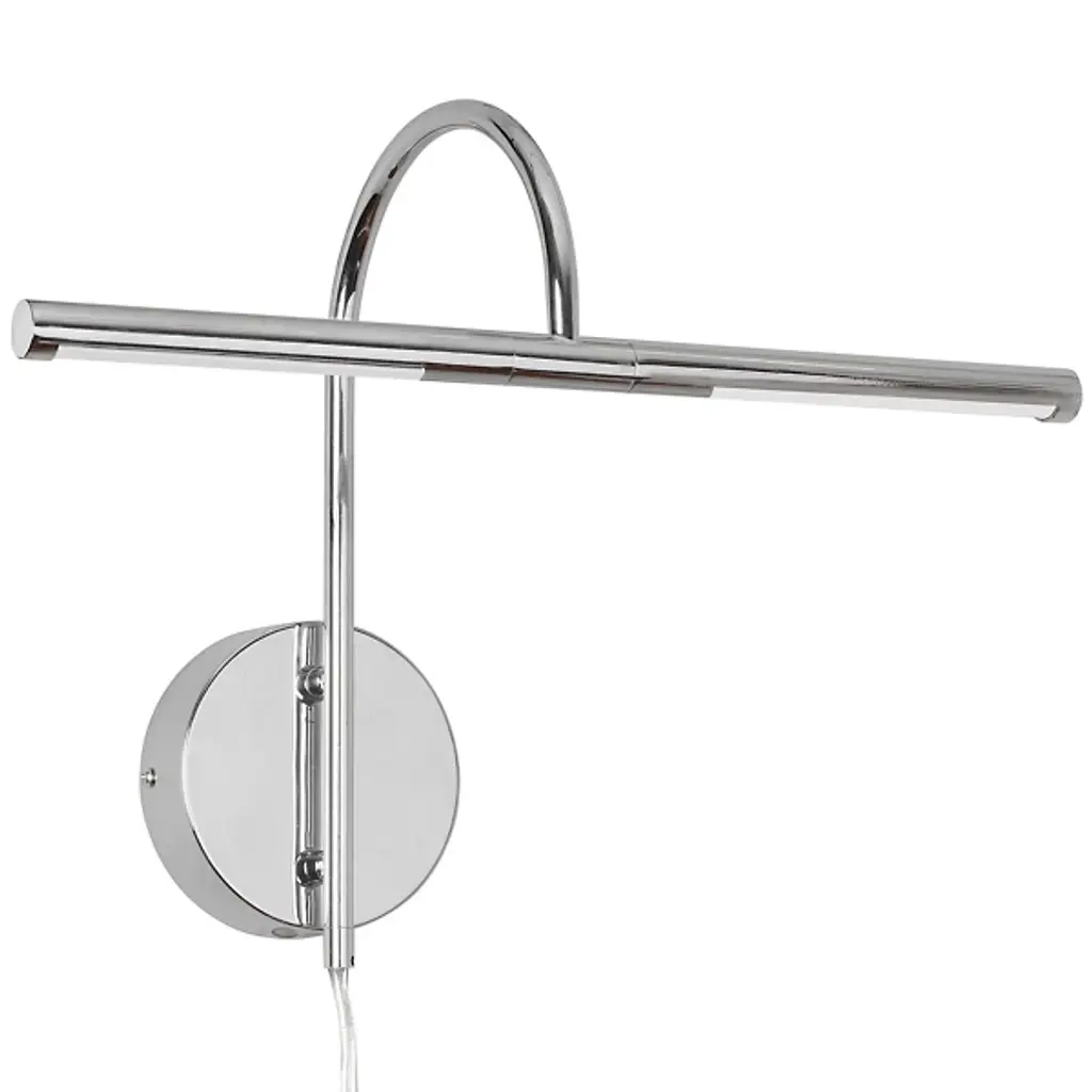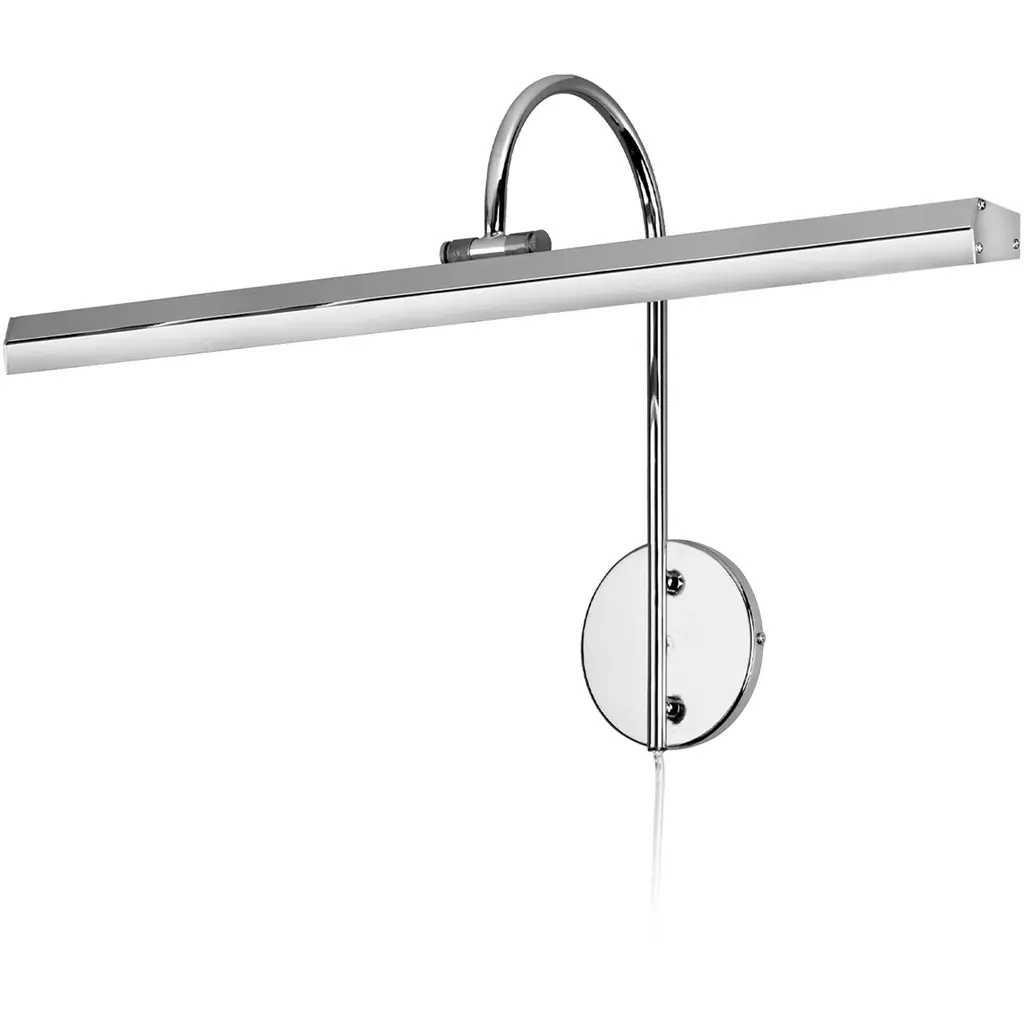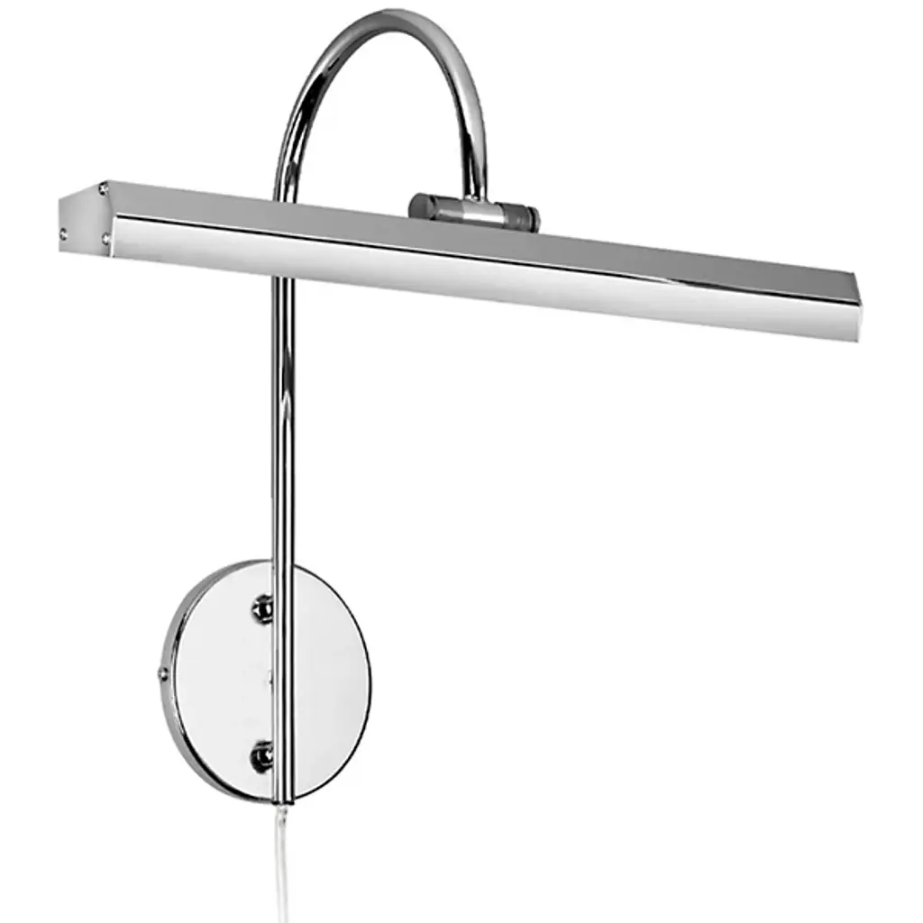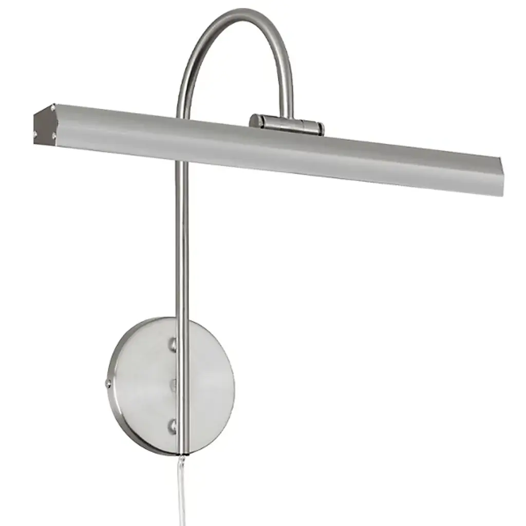 Put the best of your home décor on display with help from the Display Exhibit LED Metal Picture Light from Dainolite. This sleek and slender light boasts a circular wall mount anchoring a long, curved arm. Its head expands horizontally and contains integrated LEDs that emit a balanced downlight of energy-efficient illumination. A simple and sophisticated piece, this picture light makes the perfect addition to a contemporary living room or office space.