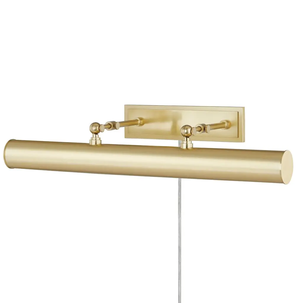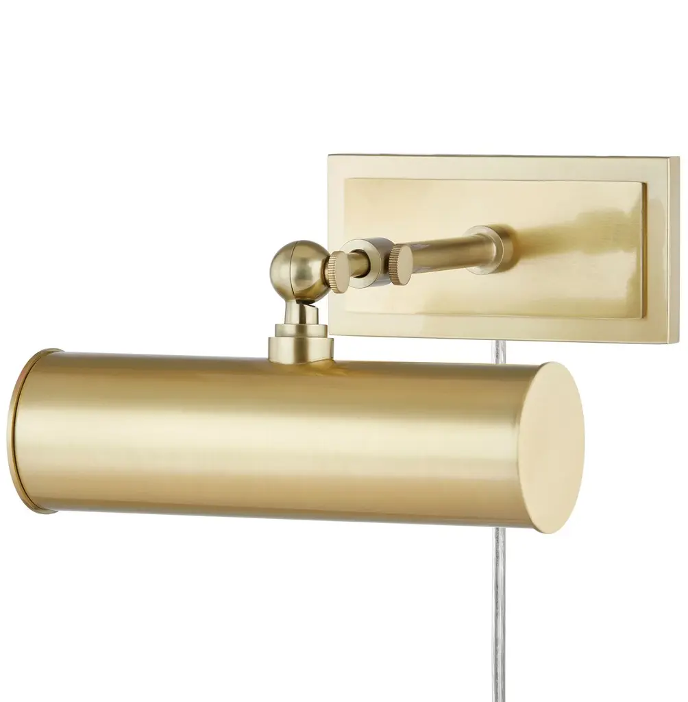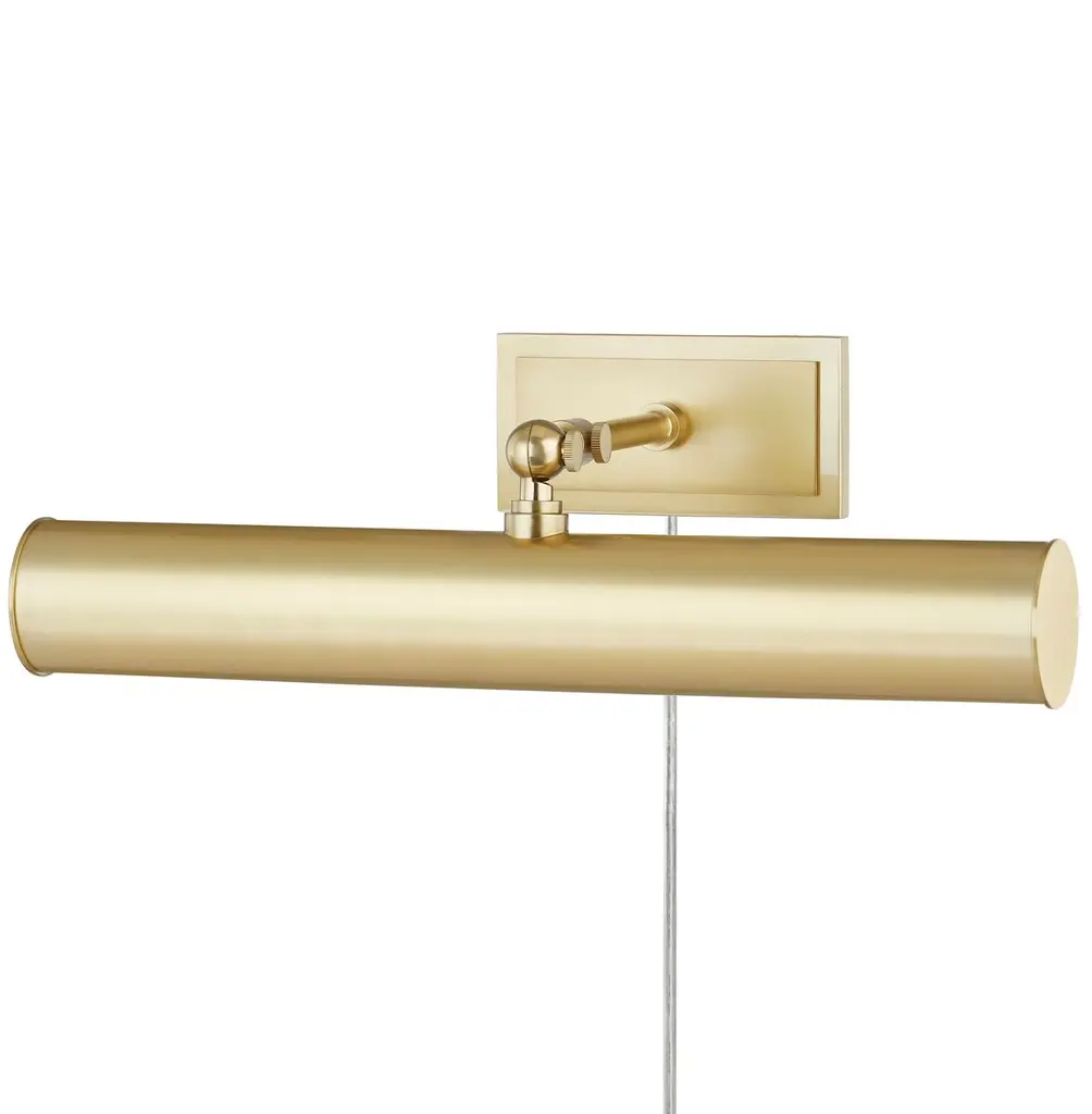 Whether you want to bring more attention to artwork or highlight a wall shelf of your favorite things, Holly is up to the task. This plug-in picture light now comes in an Aged Brass or Natural Grasscloth finish to create a more traditional or distinctive look. Available in three sizes, Holly’s style-forward design and versatility make it perfect for any space needing focused light.