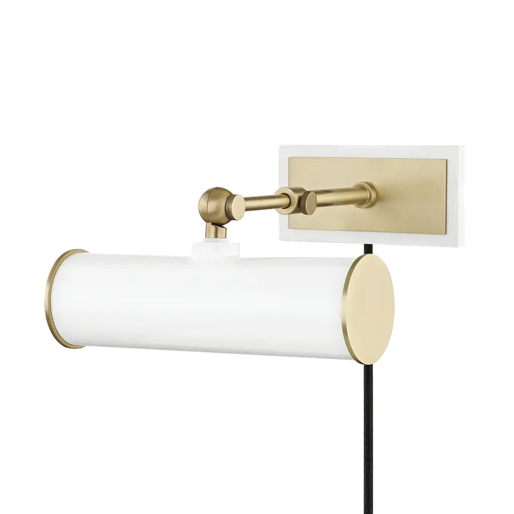 Whether you want to bring more attention to artwork or highlight a wall shelf of your favorite things, Holly is up to the task. This plug-in picture light now comes in an Aged Brass or Natural Grasscloth finish to create a more traditional or distinctive look. Available in three sizes, Holly’s style-forward design and versatility make it perfect for any space needing focused light.