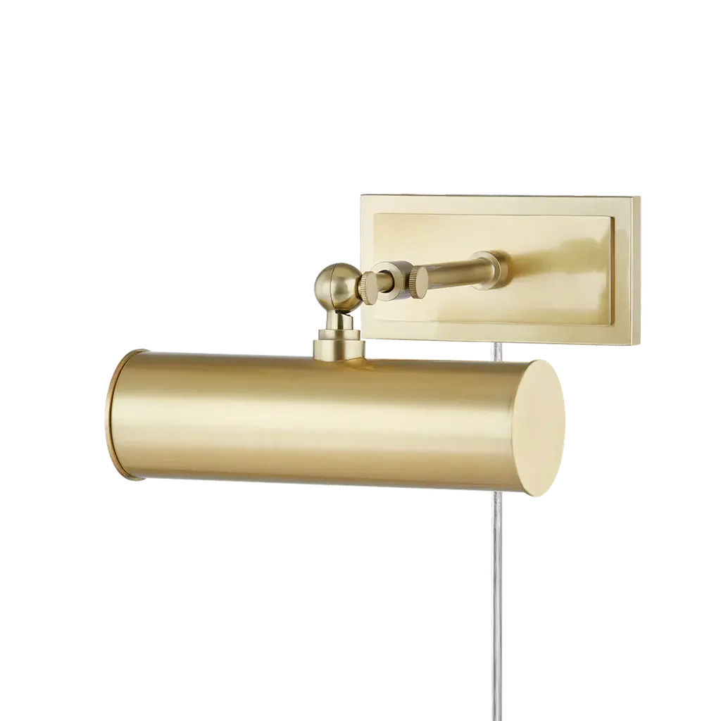 Whether you want to bring more attention to artwork or highlight a wall shelf of your favorite things, Holly is up to the task. This plug-in picture light now comes in an Aged Brass or Natural Grasscloth finish to create a more traditional or distinctive look. Available in three sizes, Holly’s style-forward design and versatility make it perfect for any space needing focused light.