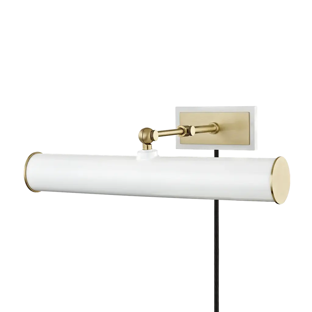 Whether you want to bring more attention to artwork or highlight a wall shelf of your favorite things, Holly is up to the task. This plug-in picture light now comes in an Aged Brass or Natural Grasscloth finish to create a more traditional or distinctive look. Available in three sizes, Holly’s style-forward design and versatility make it perfect for any space needing focused light.