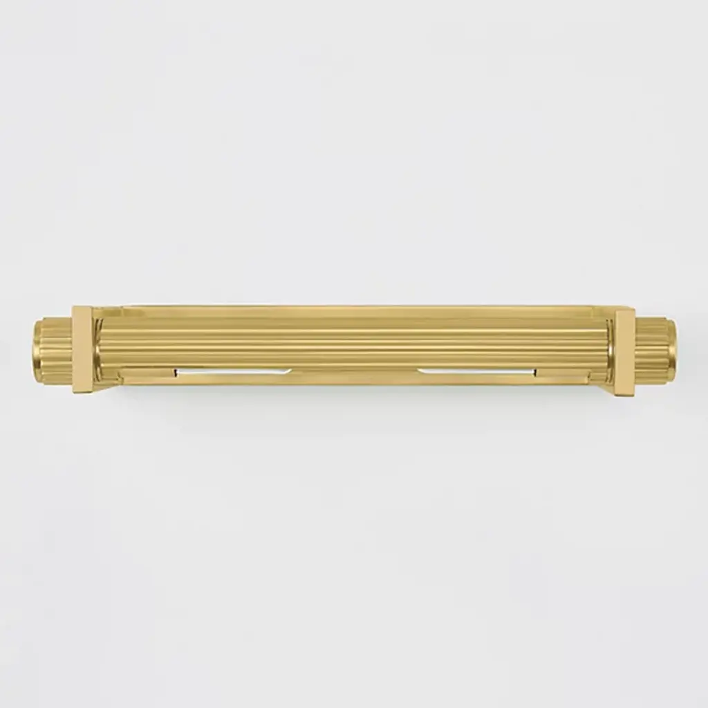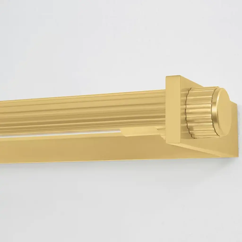 The Judd Picture Light from Hudson Valley Lighting channels 1960s Italian minimalism through its allover fluted bar design. The round metal frame features continuous ribbing that runs the entire length, giving this picture light texture without overwhelming the artwork it illuminates. Rather than competing with your wall pieces, this fixture serves as an understated companion that adds just enough industrial character to catch the eye between glances at your collection. The rectangular backplate keeps mounting simple, while the fluted detailing brings both antique charm and mechanical precision to gallery walls, hallways, or anywhere you display cherished pieces.