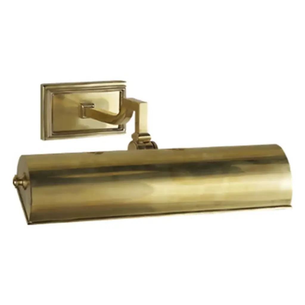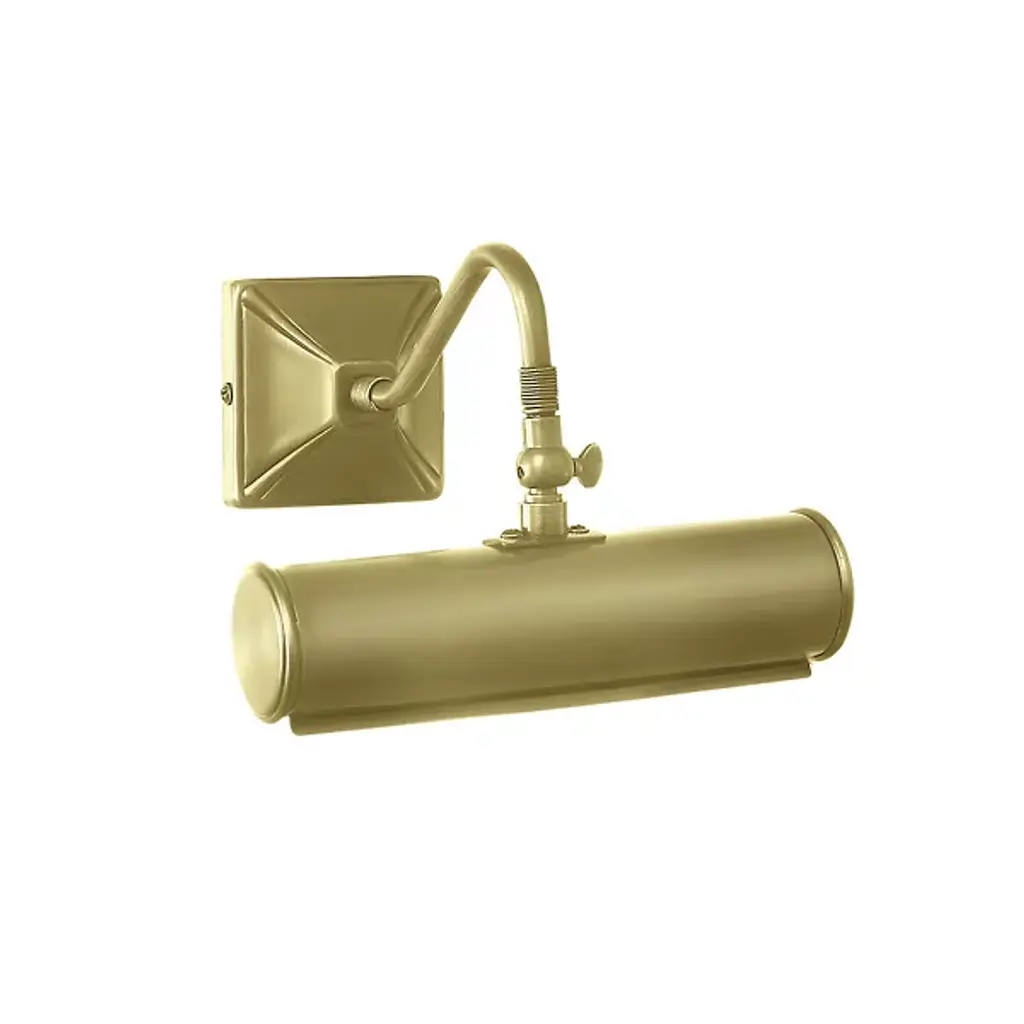The Leo Picture Light from Lucas McKearn defines one’s wall-hung pictures with even lighting and an understated design. This transitional piece gives off an antique style through its hardware detailing. Mounting with a beveled backplate, a slender arm comes forward with a joint mechanism that allows the lamp head to tilt up and down. While lit, the long lamp head eliminates glare while giving a clean, soft glaze to one’s framed art pieces.