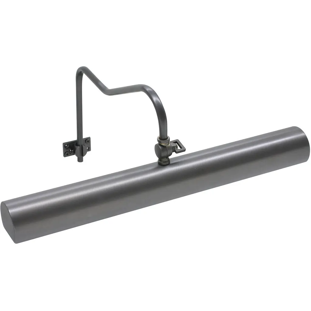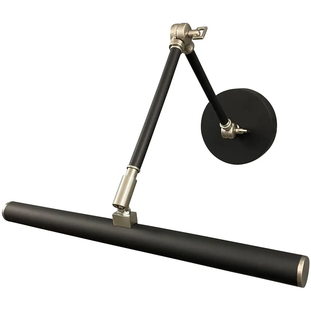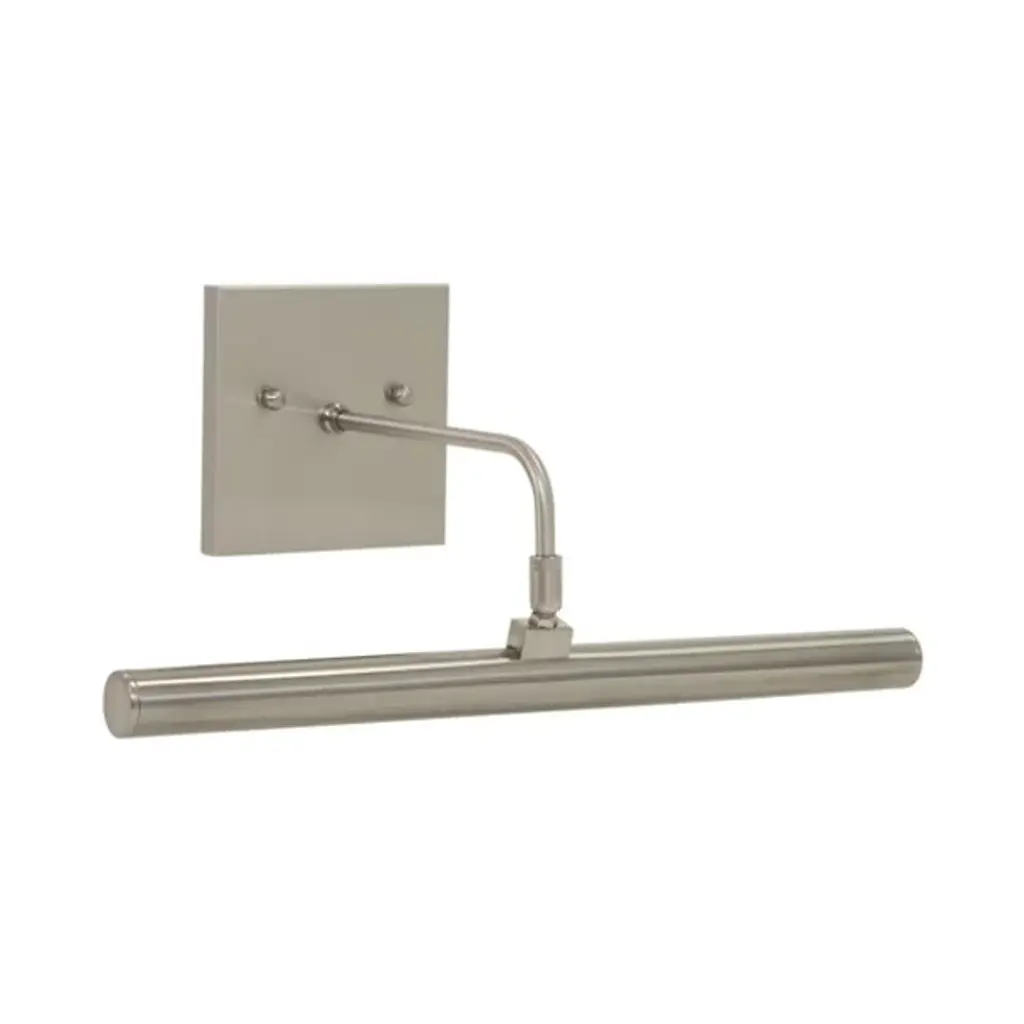 The Leo Picture Light from Lucas McKearn defines one’s wall-hung pictures with even lighting and an understated design. This transitional piece gives off an antique style through its hardware detailing. Mounting with a beveled backplate, a slender arm comes forward with a joint mechanism that allows the lamp head to tilt up and down. While lit, the long lamp head eliminates glare while giving a clean, soft glaze to one’s framed art pieces.