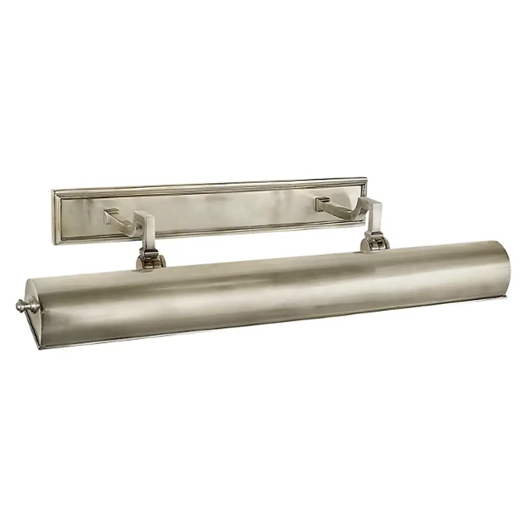 The Leo Picture Light from Lucas McKearn defines one’s wall-hung pictures with even lighting and an understated design. This transitional piece gives off an antique style through its hardware detailing. Mounting with a beveled backplate, a slender arm comes forward with a joint mechanism that allows the lamp head to tilt up and down. While lit, the long lamp head eliminates glare while giving a clean, soft glaze to one’s framed art pieces.