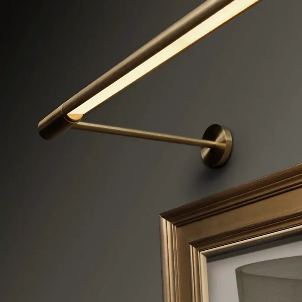 The Lucia Art LED Picture Light from Boyd Lighting directs precise illumination exactly where needed, defining artwork with intentional clarity. Crafted from architectural bronze, this fixture serves as a refined instrument that enhances rather than competes with the art it illuminates. The extended arm positions light at the optimal distance from wall surfaces, creating proper distribution of illumination across canvases of various sizes. Its minimalist design employs advanced LED technology that reveals true colors and textures while consuming minimal energy. This thoughtfully engineered light makes artwork the star of any room.