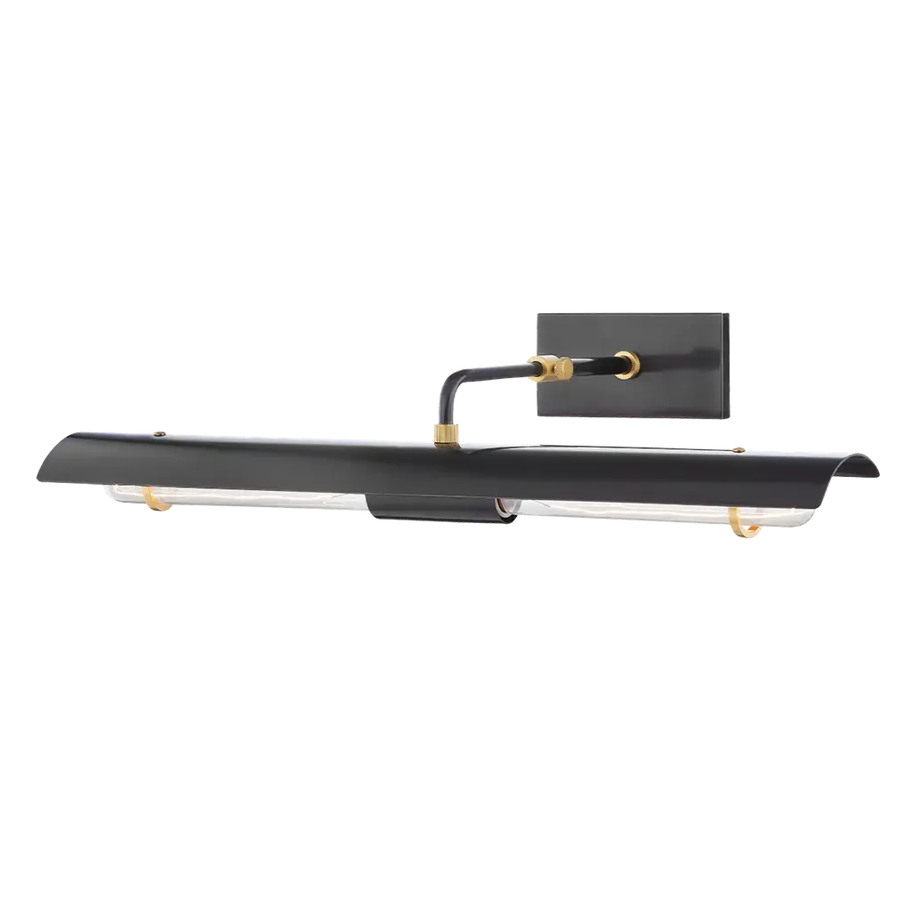 The Melbourne LED Picture Light by Hudson Valley Lighting reimagines the classic picture light with a contemporary touch, embodying subtlety and discretion. The light is made from rich, robust brass, with a design that showcases a lengthy LED bar light elegantly supported by a sleek metal strut, designed to deliver optimal illumination while maintaining a minimalistic visual presence. Ideal over a mirror, the fixture is listed for damp environments, providing a modern and discreet solution to showcase artwork, putting the displayed piece first and refusing to overpower it.