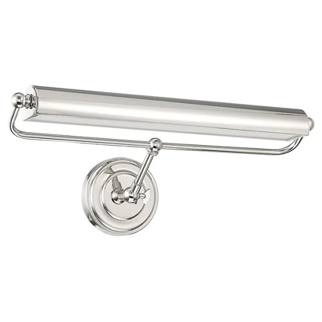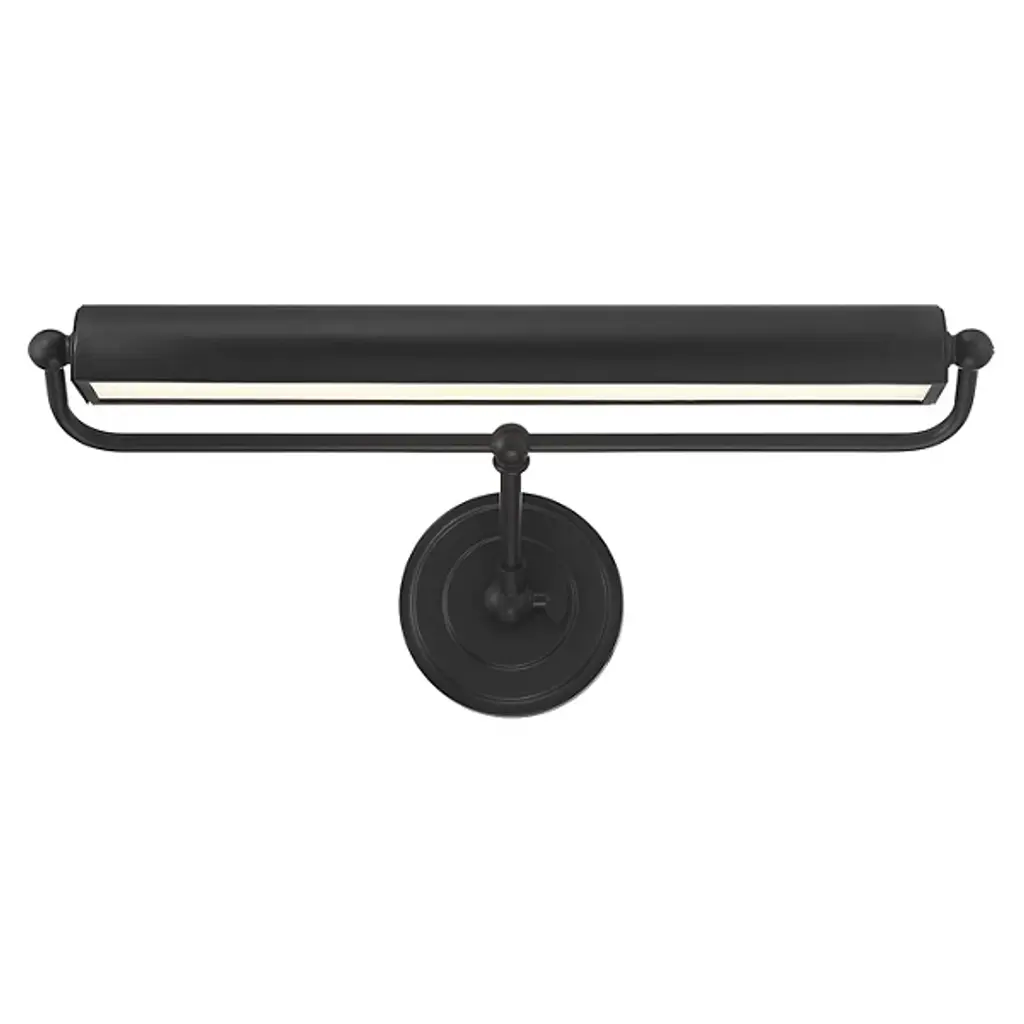 The Miller LED Picture Light from Crystorama marries modern functionality with classic grace. This sleek fixture features a long, cylindrical light bar supported by a decorative arm and circular wall plate. The design cleverly combines industrial inspiration with a monochromatic appeal and is easy to mount on the wall, making it a versatile lighting solution. Inspired by an archetypal reading desk lamp, its elongated shape allows for generous illumination, perfect for highlighting artwork or your favorite spots around the house.
