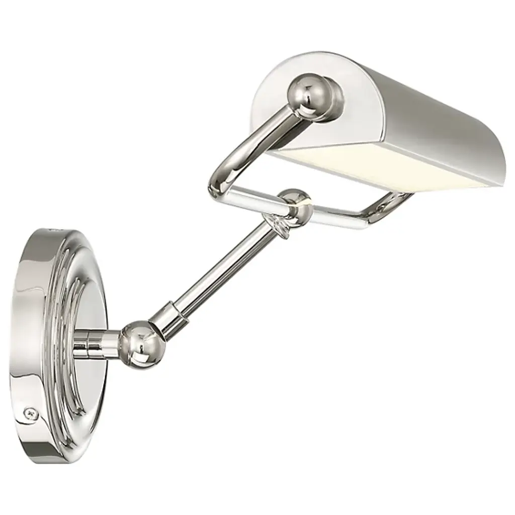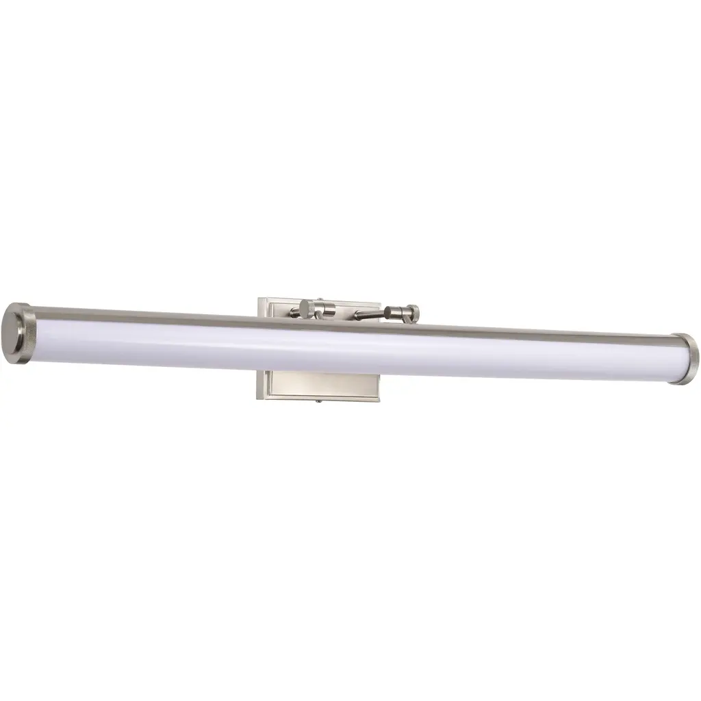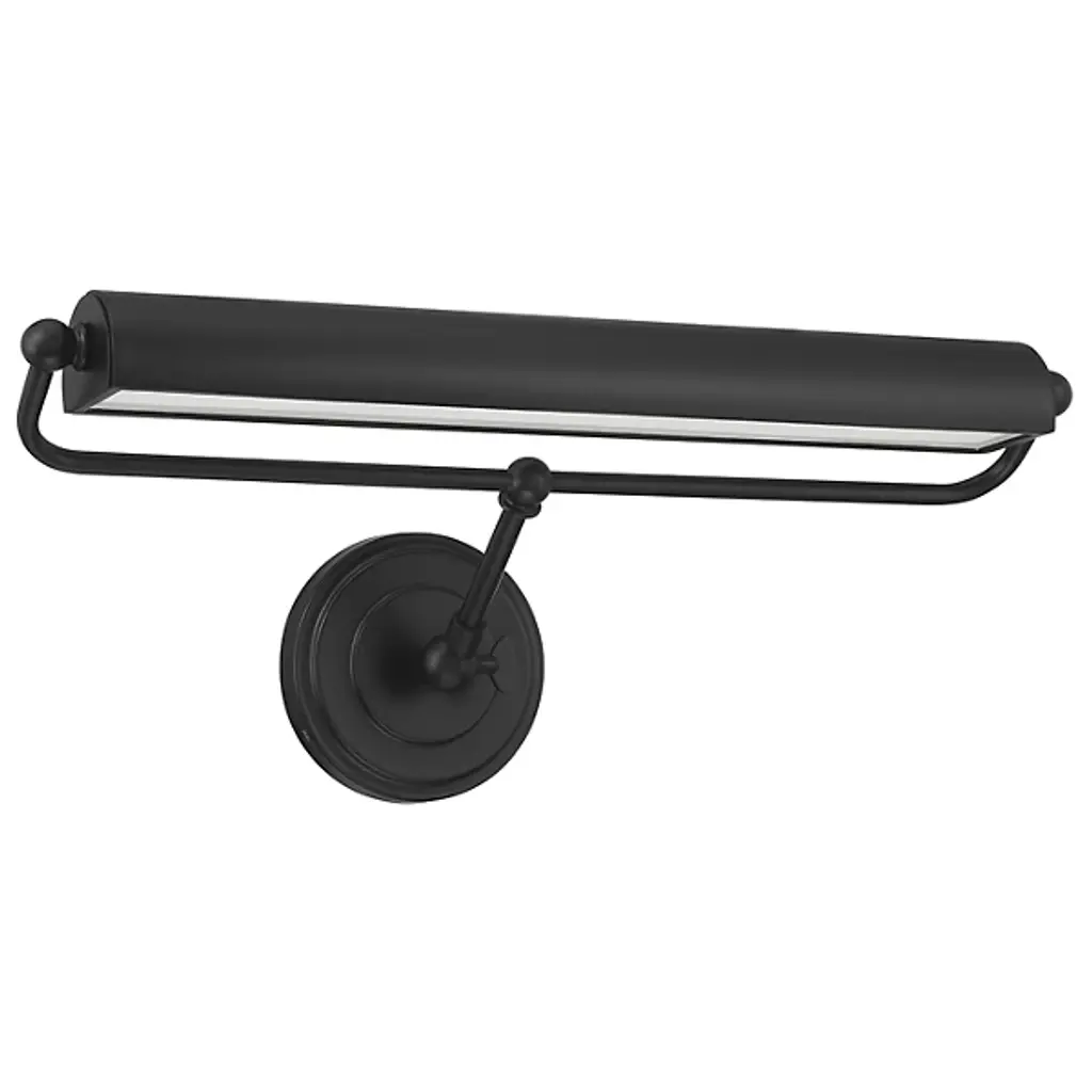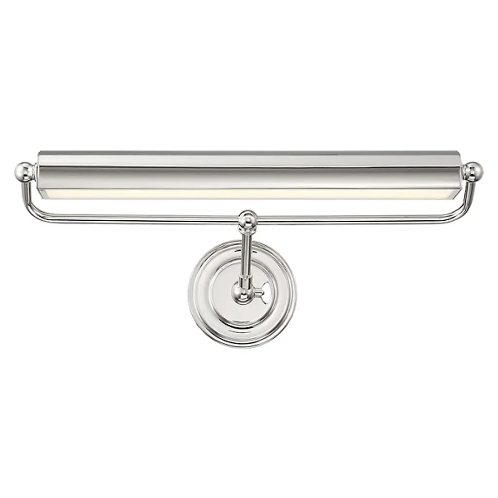 The Miller LED Picture Light from Crystorama marries modern functionality with classic grace. This sleek fixture features a long, cylindrical light bar supported by a decorative arm and circular wall plate. The design cleverly combines industrial inspiration with a monochromatic appeal and is easy to mount on the wall, making it a versatile lighting solution. Inspired by an archetypal reading desk lamp, its elongated shape allows for generous illumination, perfect for highlighting artwork or your favorite spots around the house.