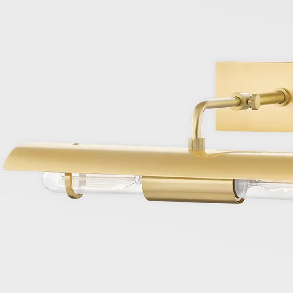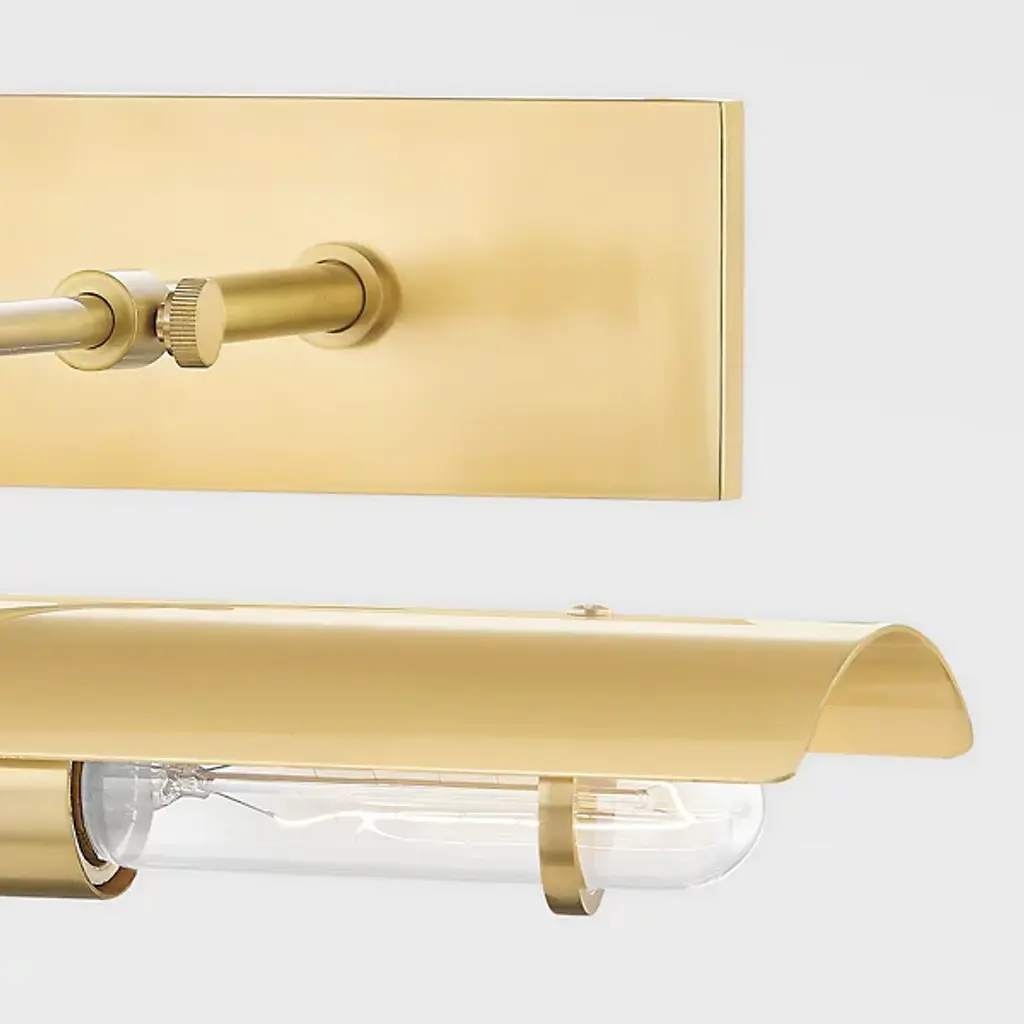 Encourage your audience to focus on the subject with the Raelynn Picture Light from Mitzi. It is a transitional piece that draws from midcentury modern influence. The exposed bulb gives a hint of vintage industrial flair. The shade of the light is attached to a slender arm at a right angle that attaches to a linear mounting plate. Illumination is guided to the subject below, allowing the viewer to keep an eye on what matters.