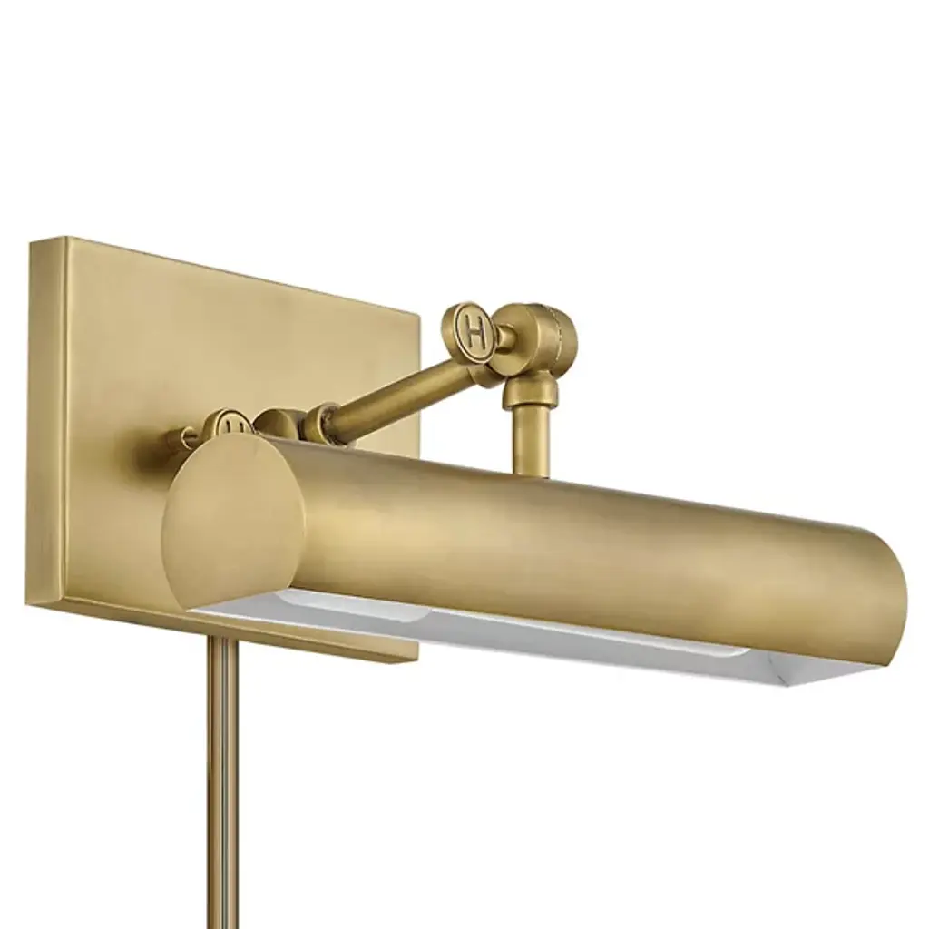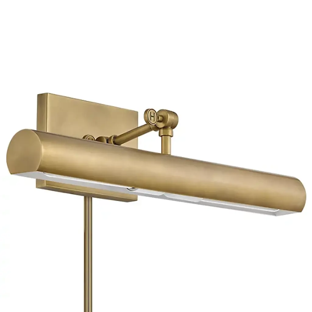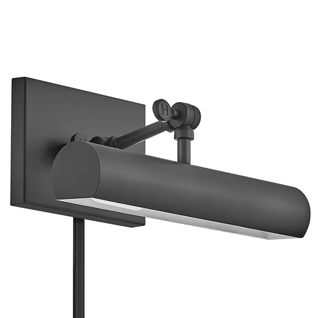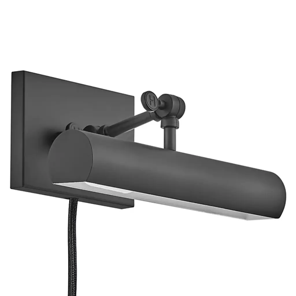 Add inspired style and flexibility to interiors with the striking lines of the Stokes Picture Light from Hinkley Lighting. A charming vintage design with intricate elements extending from a steel wall plate via a slim, double-jointed arm, it sets expressive lamping under a long, posable hood, ideal for illuminating wall art. The curving metal shape obscures light to the sides, transforming it into focused task light accompanied by reflected and ambient warmth.