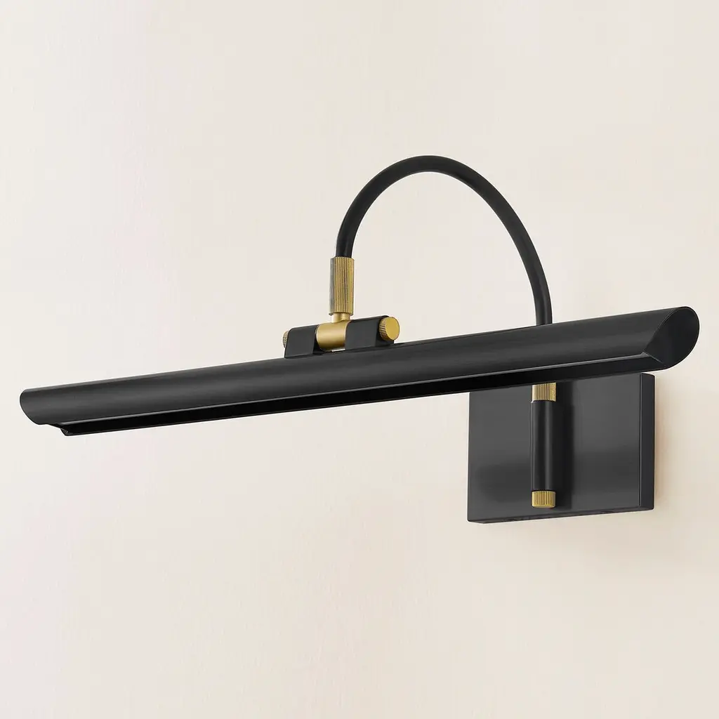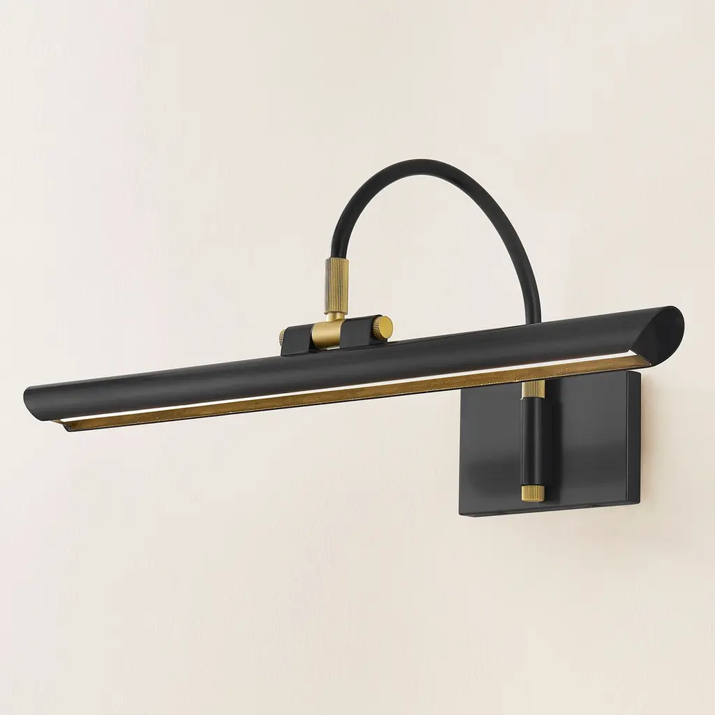 Breathing new life into a classic picture light design, Sutton features a slender silhouette and integrated LED technology. Supported by an arched neck, the shade is folded into a tube, leaving a thin opening that allows a band of light to pass through. Available in two sizes, Sutton provides discreet, yet powerful illumination of wall decor.