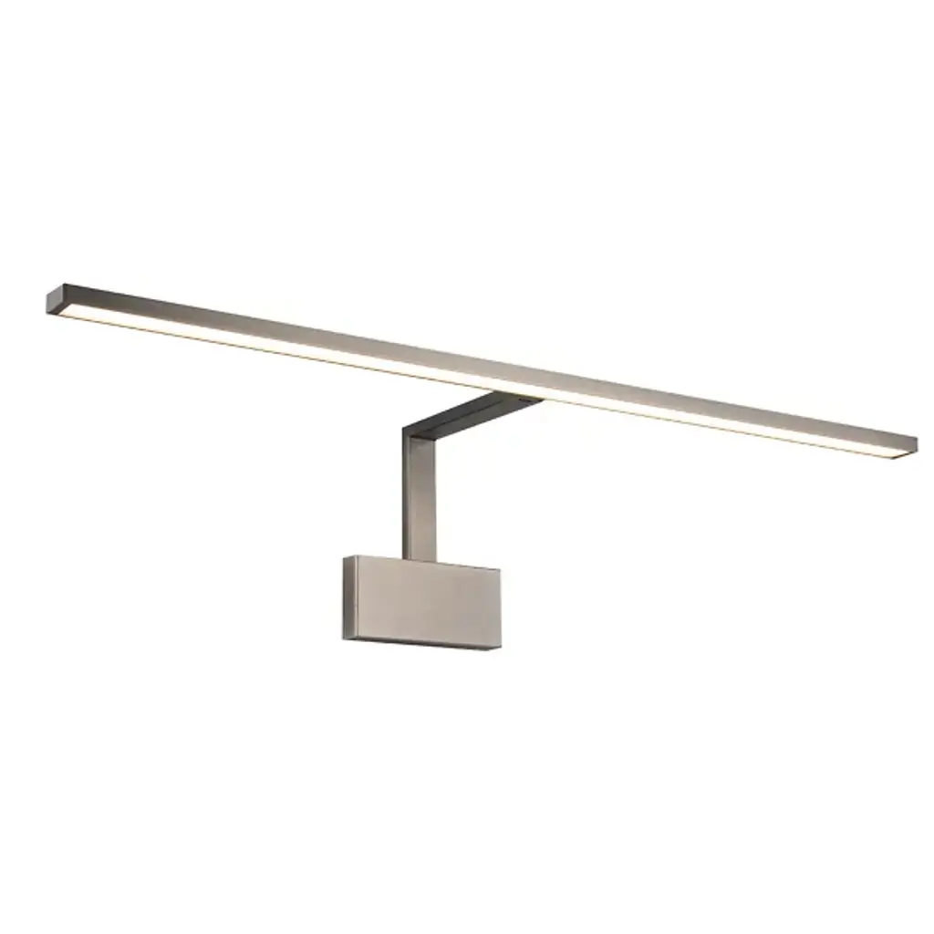 Introduce a clean and minimalist modern piece to your wall space with the Uptown LED Picture Light from dweLED. Composed of smooth metal, this piece starts with a rectangular backplate that extends a sharply-angled arm. The arm mounts a wide and thin horizontal bar lined with an integrated LED. The light emitted is inviting and even, spreading down toward the wall. The glow highlights the details of objects below, whether that be paintings, photos, or other treasured displays.