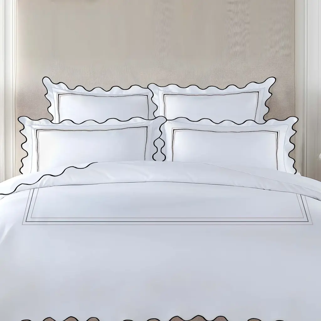 Indulge in the sophisticated simplicity and luxurious comfort of the 3 Lines and Waves Sham from The Lino. With an exquisite embroidered pattern of three flowing lines, this sham adds a refined touch to your bedding. Made from 100% Egyptian cotton with a 400-thread count percale weave, experience the ultimate in comfort while enhancing the modern style of your bedroom. Highlights