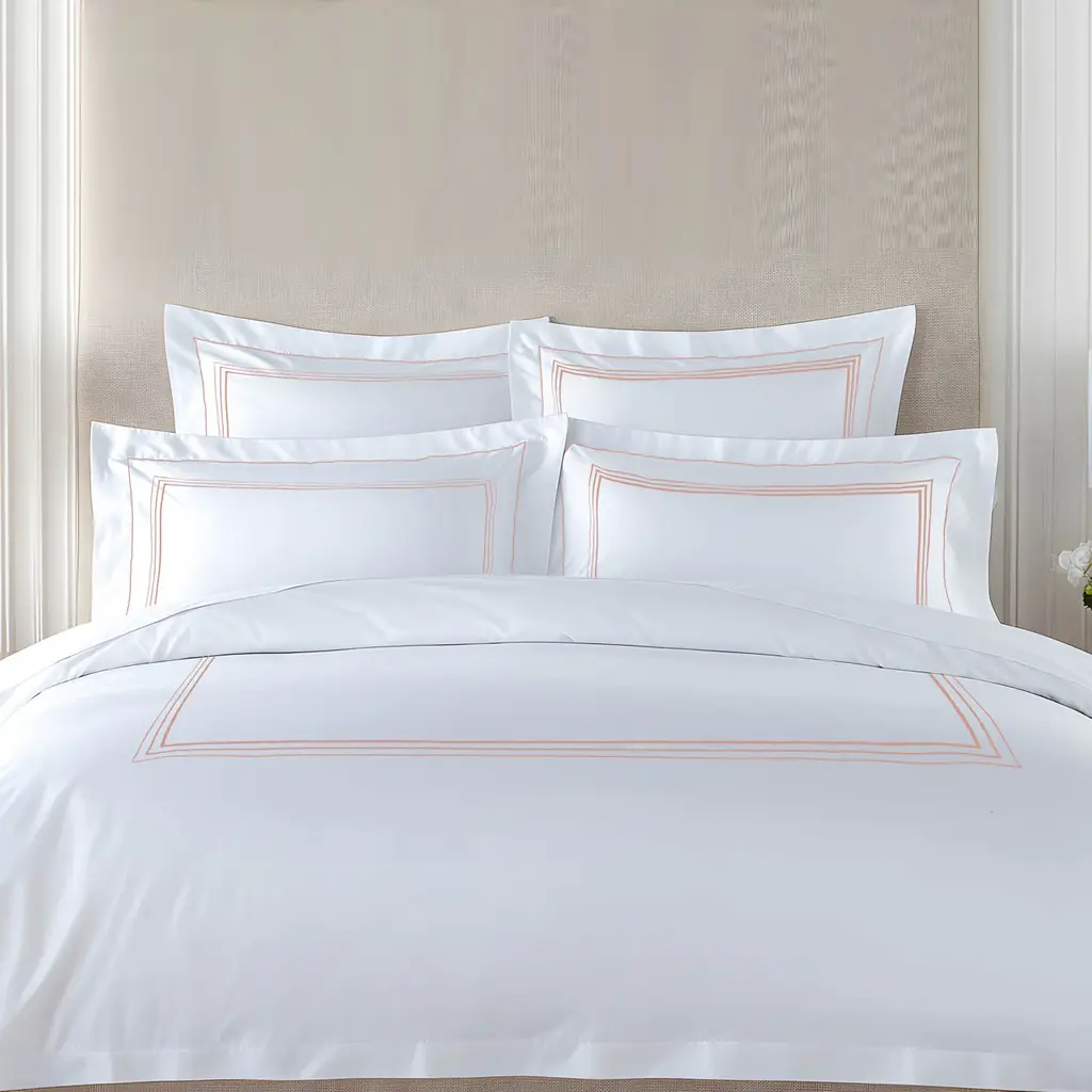 Indulge in the elegance and comfort of the Three Lines Sham from The Lino. This refined bedding piece is crafted with 100% Egyptian cotton and a 400-thread count percale weave, offering a crisp, breathable, and luxuriously soft feel. The fine embroidered lines along the edges add a sophisticated touch, elevating the structure of your bedding. Experience framed sophistication and ultimate comfort with the Three Lines Sham. Highlights