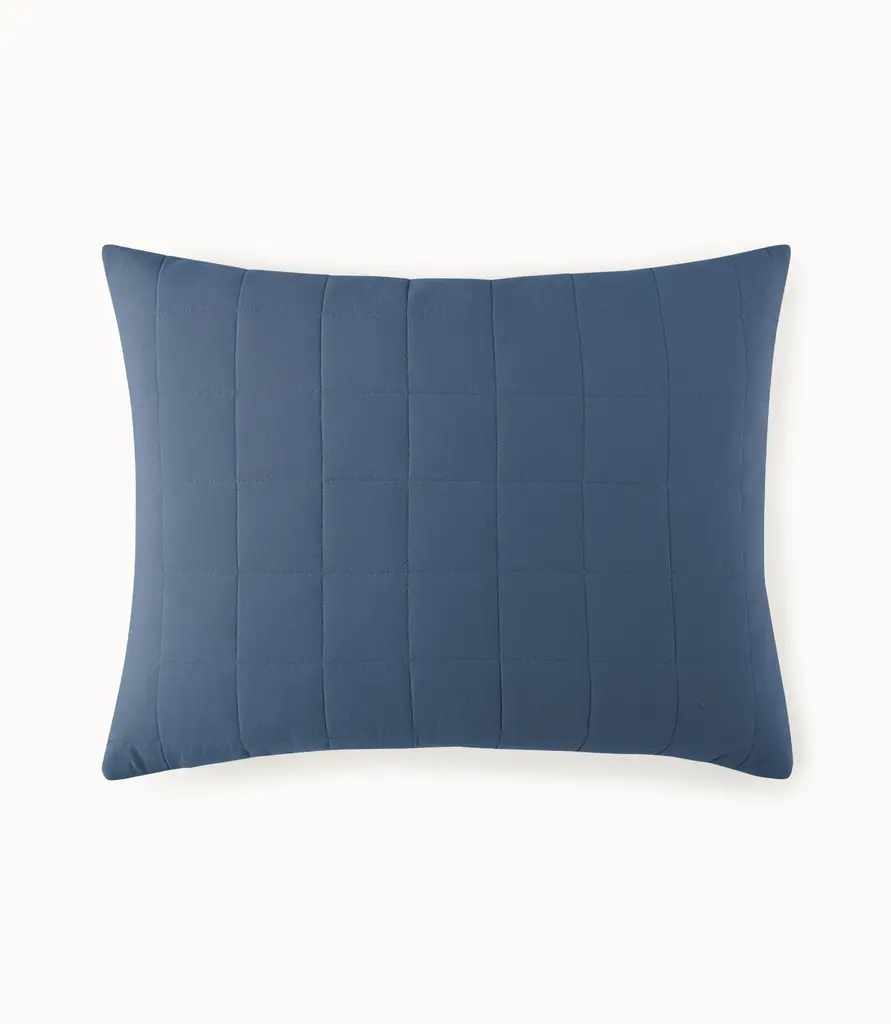 The 4 Square Quilted Sham is crafted from premium long-staple cotton and washed percale fabric, giving it a laid-back yet luxurious feel. Pair with the 4 Square coverlet for a complete