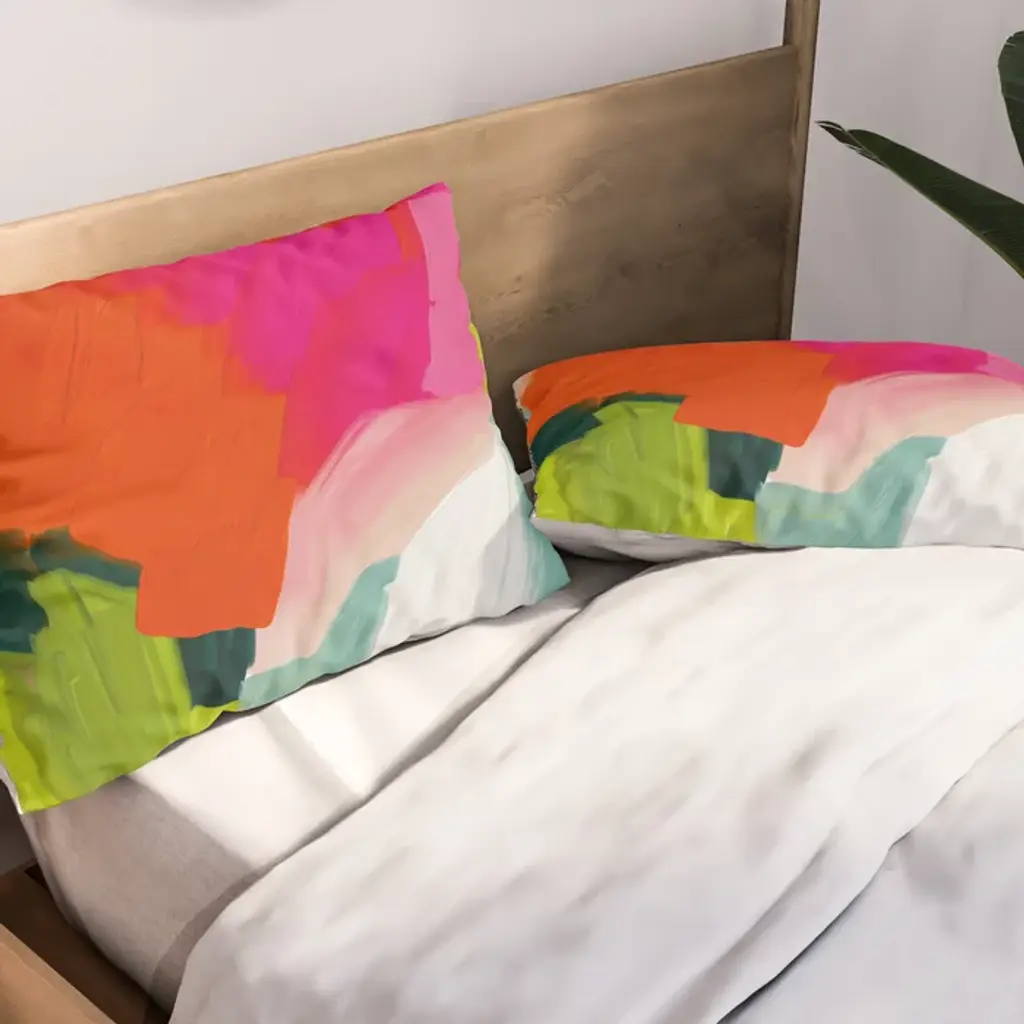 Set of 2 pillow shamsSingle sided design with white on the reversePILLOW SHAM SIZING:Standard = 26" x 20" // 66cm x 51cmKing = 36" x 20" // 91cm x 51cmCrafted with 100% premium microfiber polyester (equivalent to 300 thread count)Envelope closure for snug fitMachine wash cold (no bleach), tumble dry lowWe recommend washing prior to use to increase softness.Color variations between on-site previews and printed fabrics may occur on products with multiple fabric typesSHIPPING: Items are made to order and typically ship within 3-4 business days. Click here for more information about delivery options.RETURNS: Return requests can be made within 30 days of your item(s) delivery. Click here for more information on returns.
