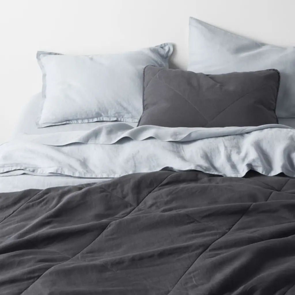Sustainable linen weaves a luxurious pillow sham that's elegant yet laid-back, with two-inch flange tailoring adding a crisp finishing touch. Naturally regulating temperatures, our exclusive linen bedding keeps sleepers cool in warm weather and warm in cooler months. The misty blue sets a serene mood, harmonizing effortlessly with bedding in a wide range of colors and neutrals for a bed made just for you. For a relaxed, layered look, mix and match with our European flax linen sheets and duvet covers.Bed pillows also available.