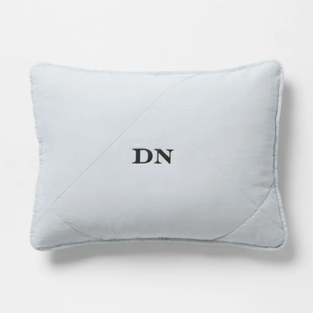 Our Aire Natural collection makes a laid-back bed dressed in cool-to-the-touch linen that sleeps cozy. The sustainably sourced fiber weaves a quilted pillow sham in a serene, misty blue. Stitched on the diagonal with oversized, off-center diamonds, the soft sham updates quilting for the modern bedroom. Pair the effortlessly chic sham with our other linen bedding in the same dreamy hue, or mix and match to keep the look fresh.Bed pillows also available.