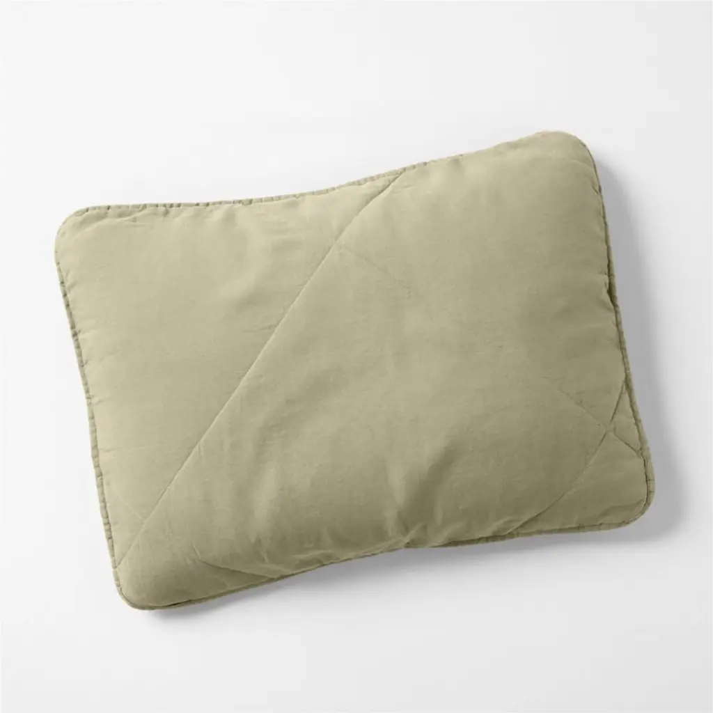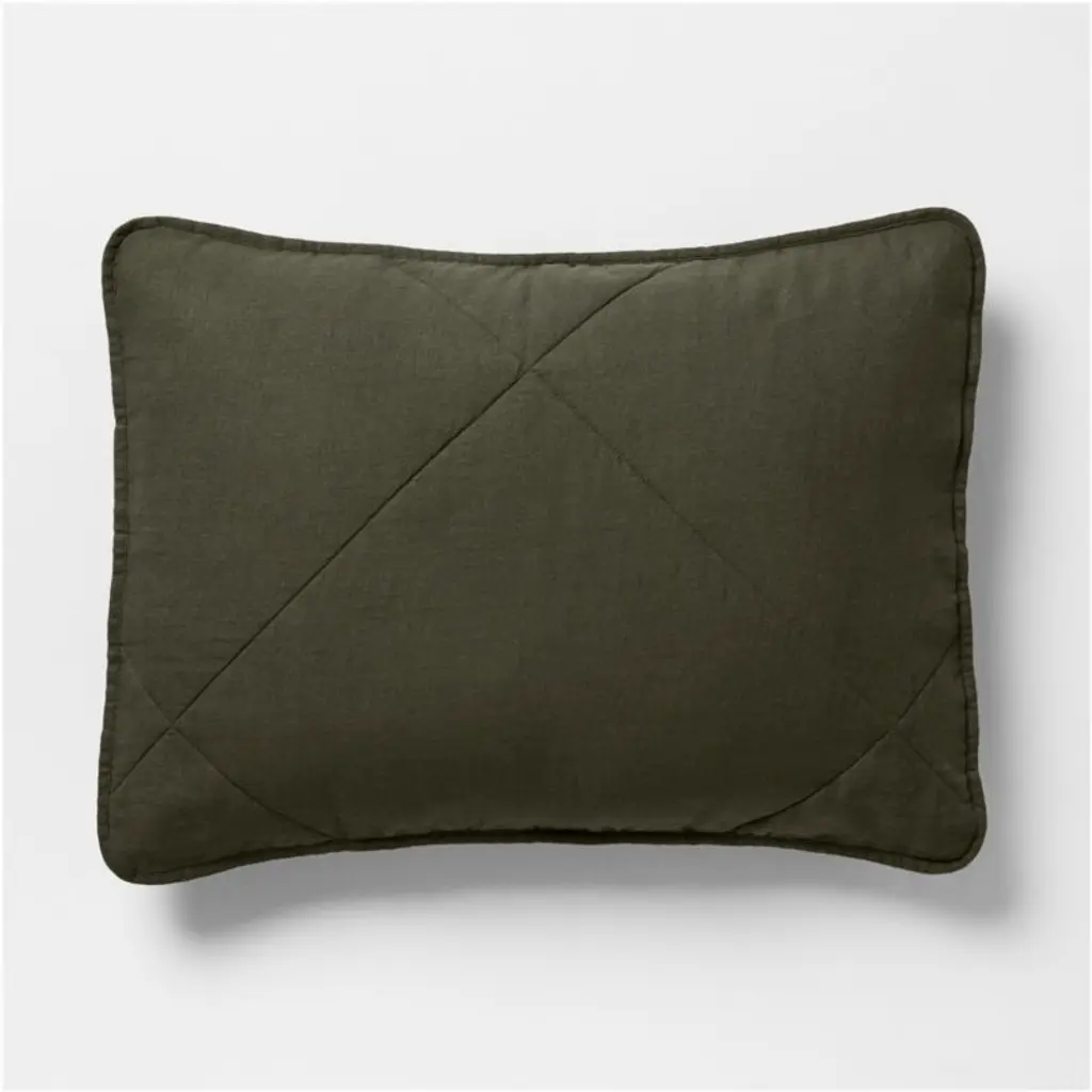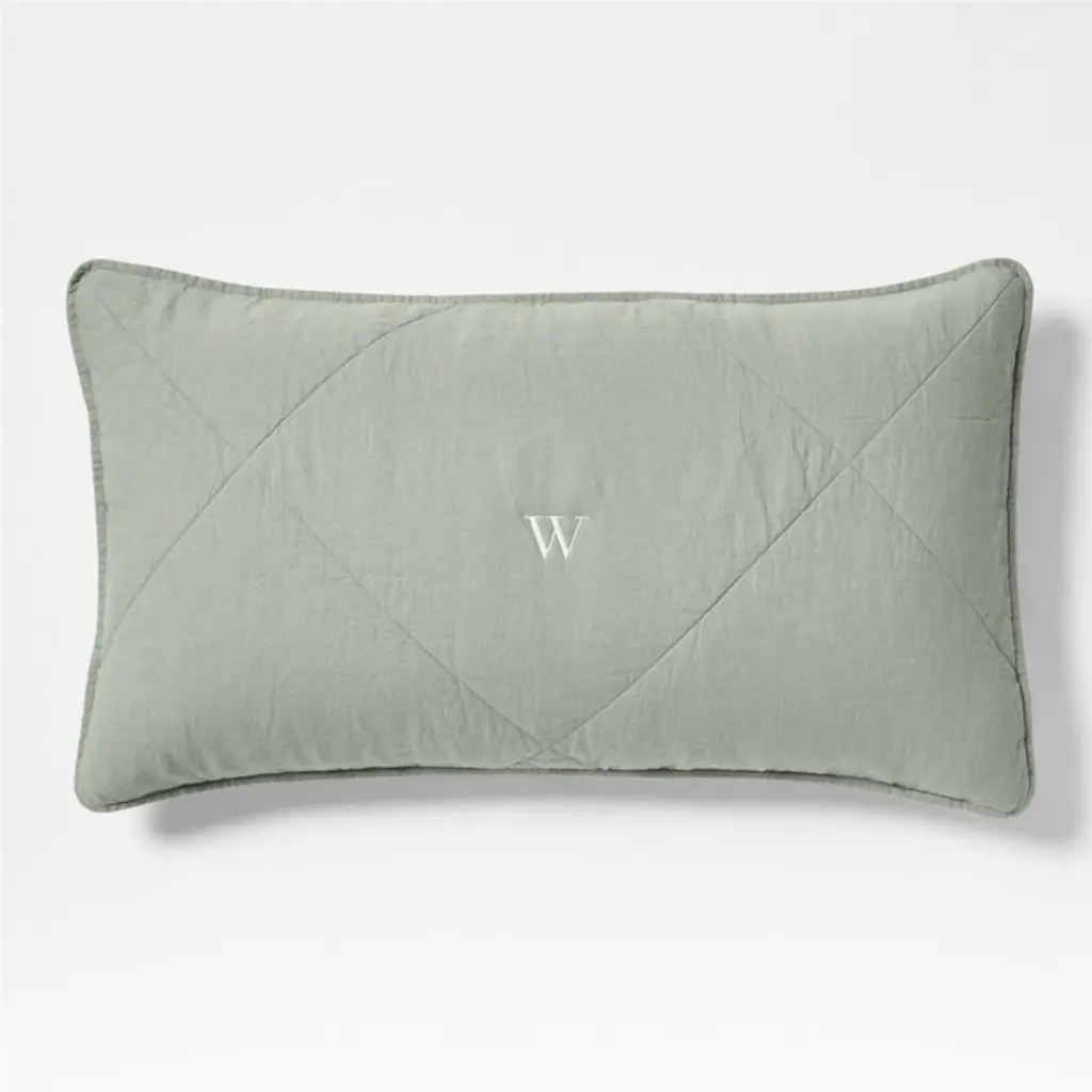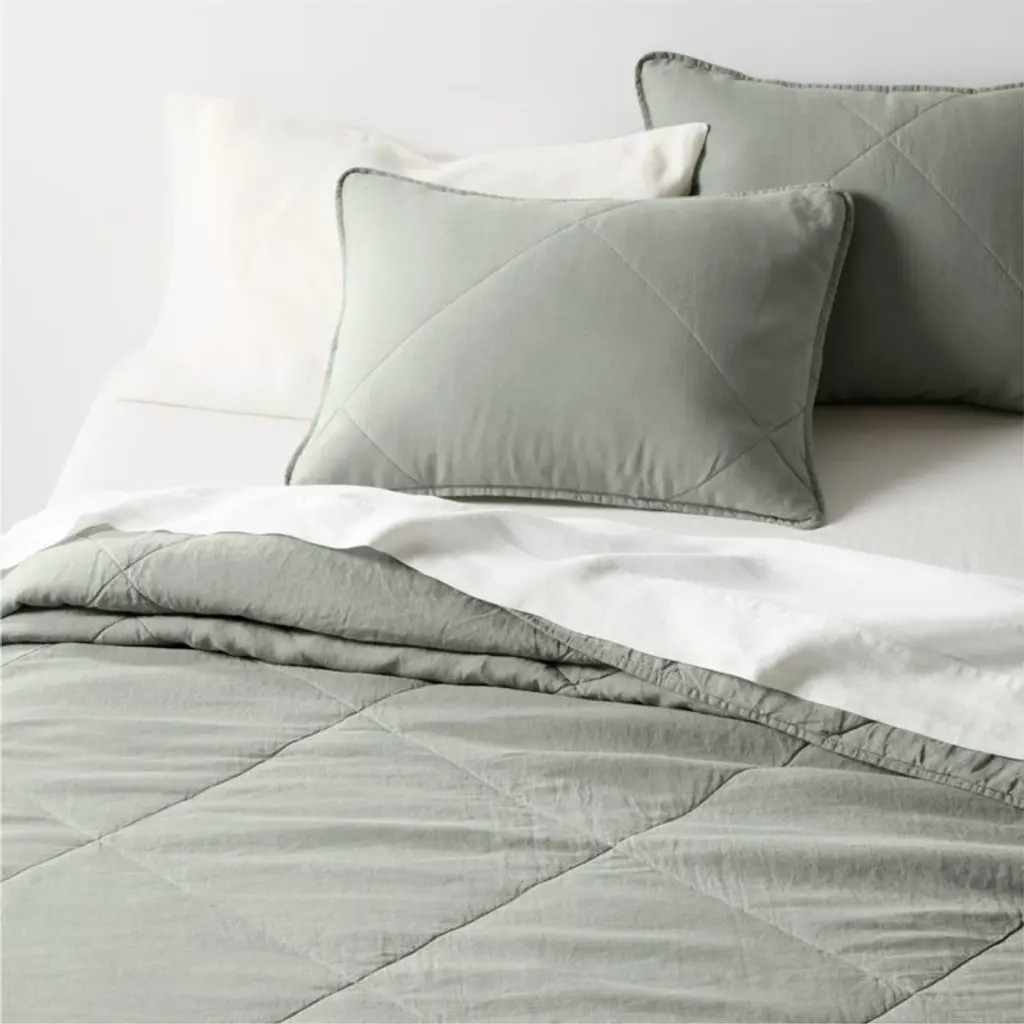 Our Aire Natural collection makes a laid-back bed dressed in cool-to-the-touch linen that sleeps cozy. The sustainably sourced fiber weaves a quilted pillow sham in a sage-inspired grey-green that serves as an elevated neutral. Stitched on the diagonal with oversized, off-center diamonds, the soft sham updates quilting for the modern bedroom. Pair the effortlessly chic sham with our other linen bedding in the same cool hue, or mix and match to keep the look fresh.Bed pillows also available.