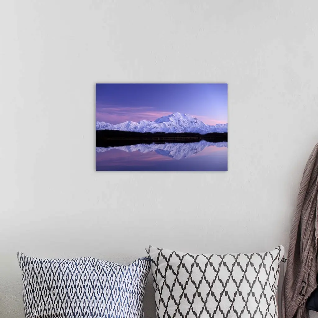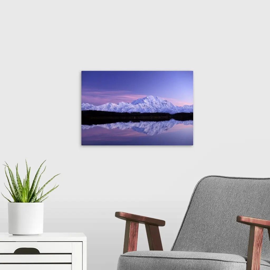 Alaska, Denali National Park, North Face Of Denali Wickersham Wall Reflected In Pond